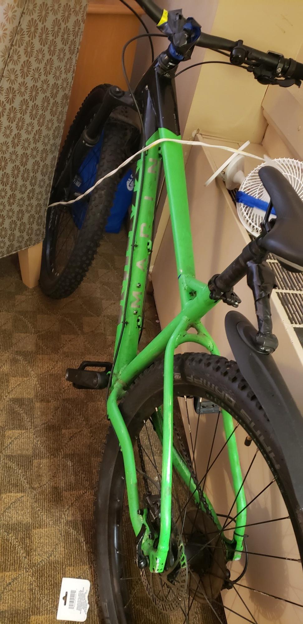 Stolen fromback the old heads at 11624 82 st bikes painted glossy black , still see green inside rear wheel frame from not taking rum off when repainted.