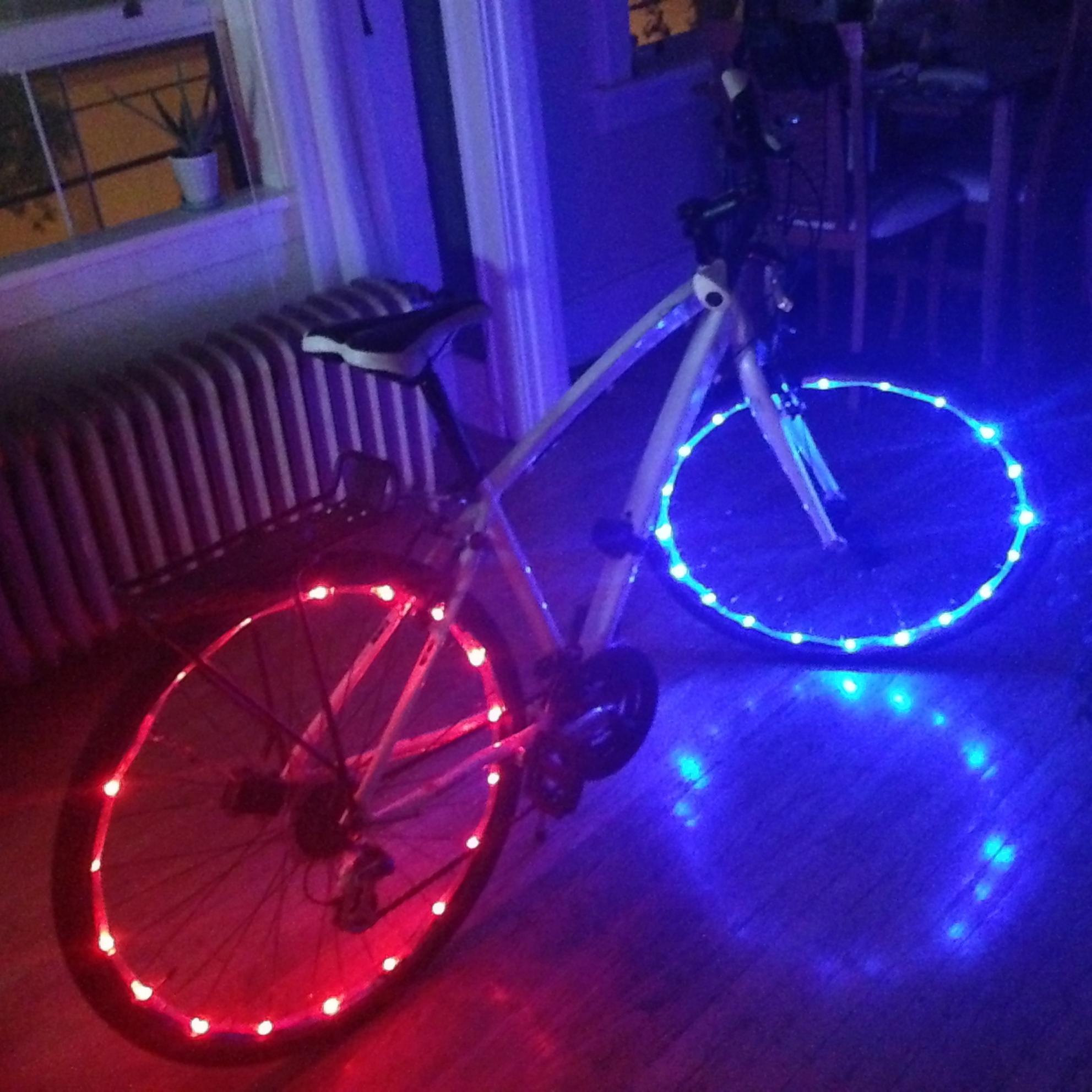 also has Wheel Brightz lights on both of the wheels. Blue in the front and red