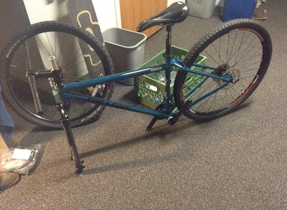 I HAD THE MOUNTAIN BIKE HANGING UP OUTSIDE LOCKED WITH A TOWING CHAIN THAT WAS LOCKED TO A SECURITY WIRE WRAPPED AROUND BEAM THAT HOLDS UP OUTSIDE DECK CEILING(i.e. had to have been cut) with 2 high strength locks. WE LEFT AROUND 6PM TO GO CLIMBING AT THE GYM THEN CAME HOME AROUND 8PM NOTICED THE BACK FENCE GATE PROPPED OPEN AND FOUND THE BIKE MISSING. I BUILT IT PIECE BY PIECE MYSELF A COUPLE YEARS AGO. THE FRAME IS FROM THE UK AND VERY UNCOMMON BRAND SAYS "ON ONE" ON THE SIDE. IT IS A DARK TEAL COLOR FRAME, BLACK FRONT ROCKSHOX FORK, 29" WHEELS, CONTINENTAL BRAND, ALL SHIMANO COMPONENTS, AND SHIMANO CLIPLESS PEDALS MEANT TO BE WORN WITH SPECIFIC MOUNTAIN BIKE SHOES I OWN. THE HANDLE BARS ARE QUITE WIDE RACEFACE BRAND BLACK GRIPS OURY BRAND, AND BRIGHT BLUE FASTENERS ON HANDLEBARS KCNC BRAND NOT COMMON AND SPECIFIC TO SHIFTERS ON BIKE. NOTHING ELSE WAS TAKEN OR DAMAGED. BUT BIKE WAS PRETTY EXPENSIVE TO MAKE AND WOULD LIKE TO HAVE IT BACK IF EVER POSSIBLE.