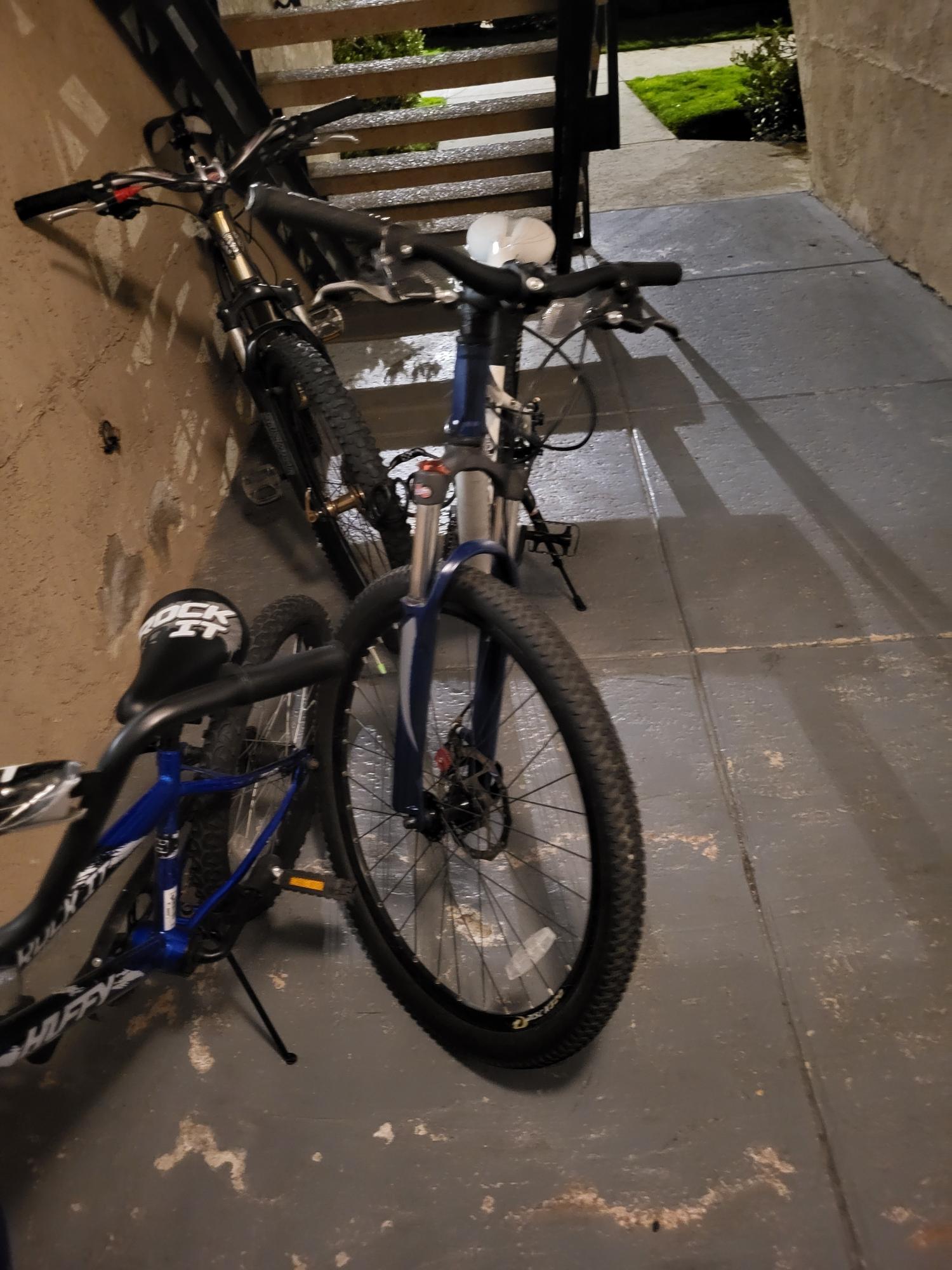 It was locked to another bike, large, solid brass/gold color, both bikes and the lock were stolen from the apartment complex garage.