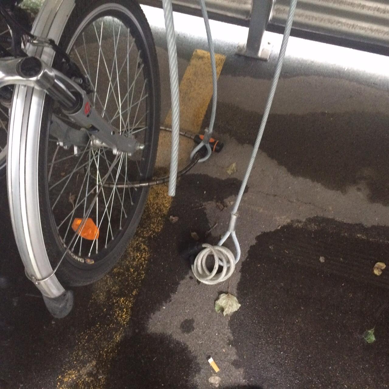Thiefs cut steel rope to which my bike was attached at the bike parking at work (see Pic 3 of my Pics). They took the bike WITH the lock. It was not the only bike that was stolen despite video cameras and busy area because it is also the designated smoking area
