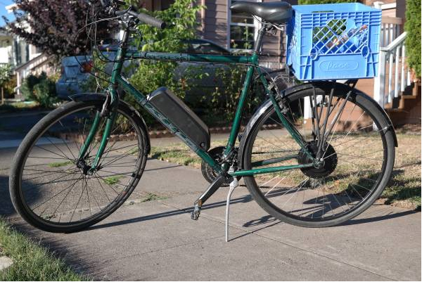 the other is a stock photo of the blue version of my bike, sans rack & green-ness