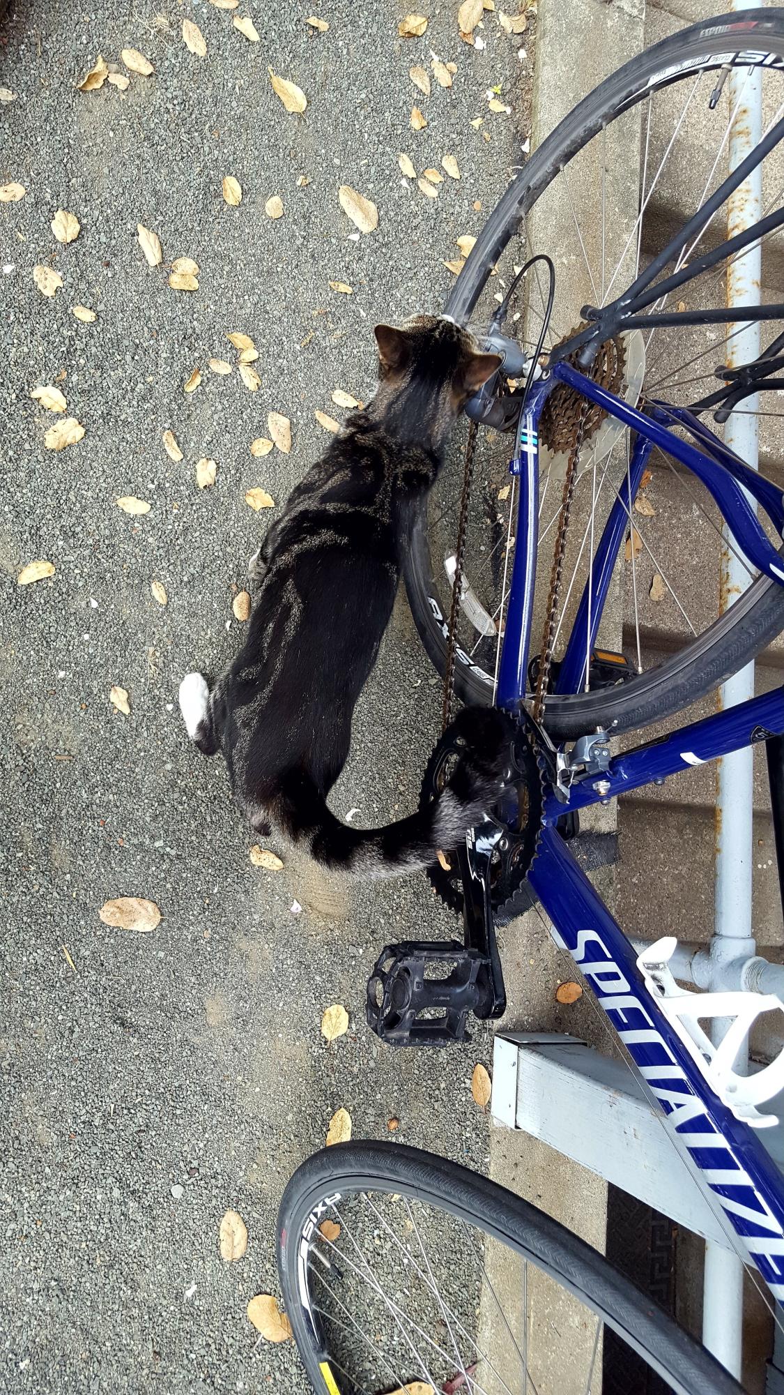 Sometime during the night, the U-lock through the main frame was cut open with bolt cutters and the bike was stolen. The bike has pin-locks in both front and rear tires, so the suspect will not be able to remove those without great effort.