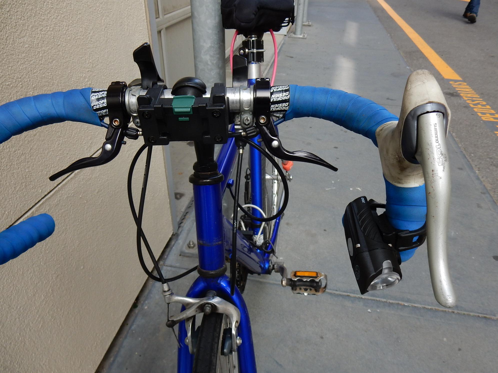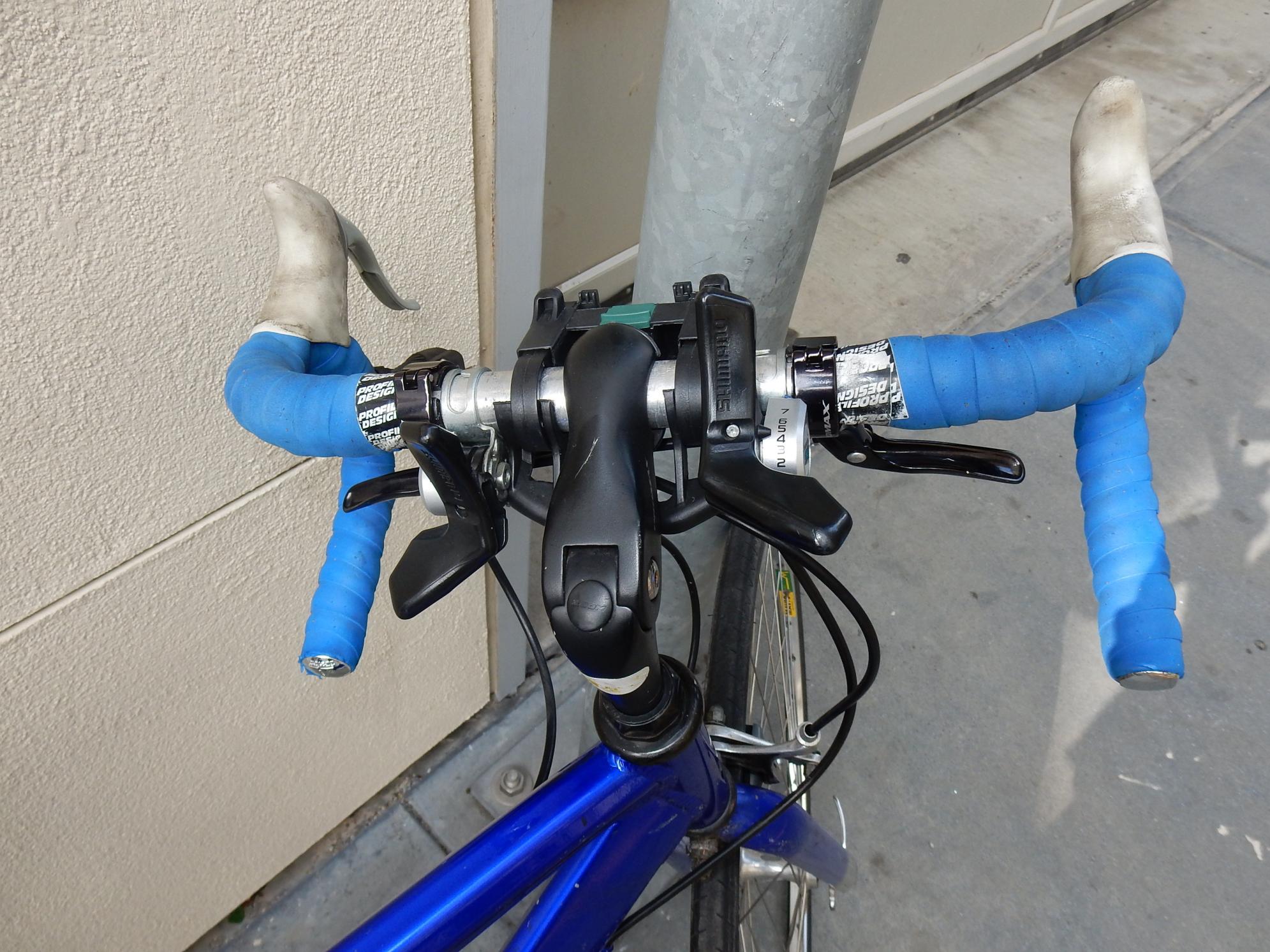 The bike has two pairs of brake levers and Gearshiftsin the center of the