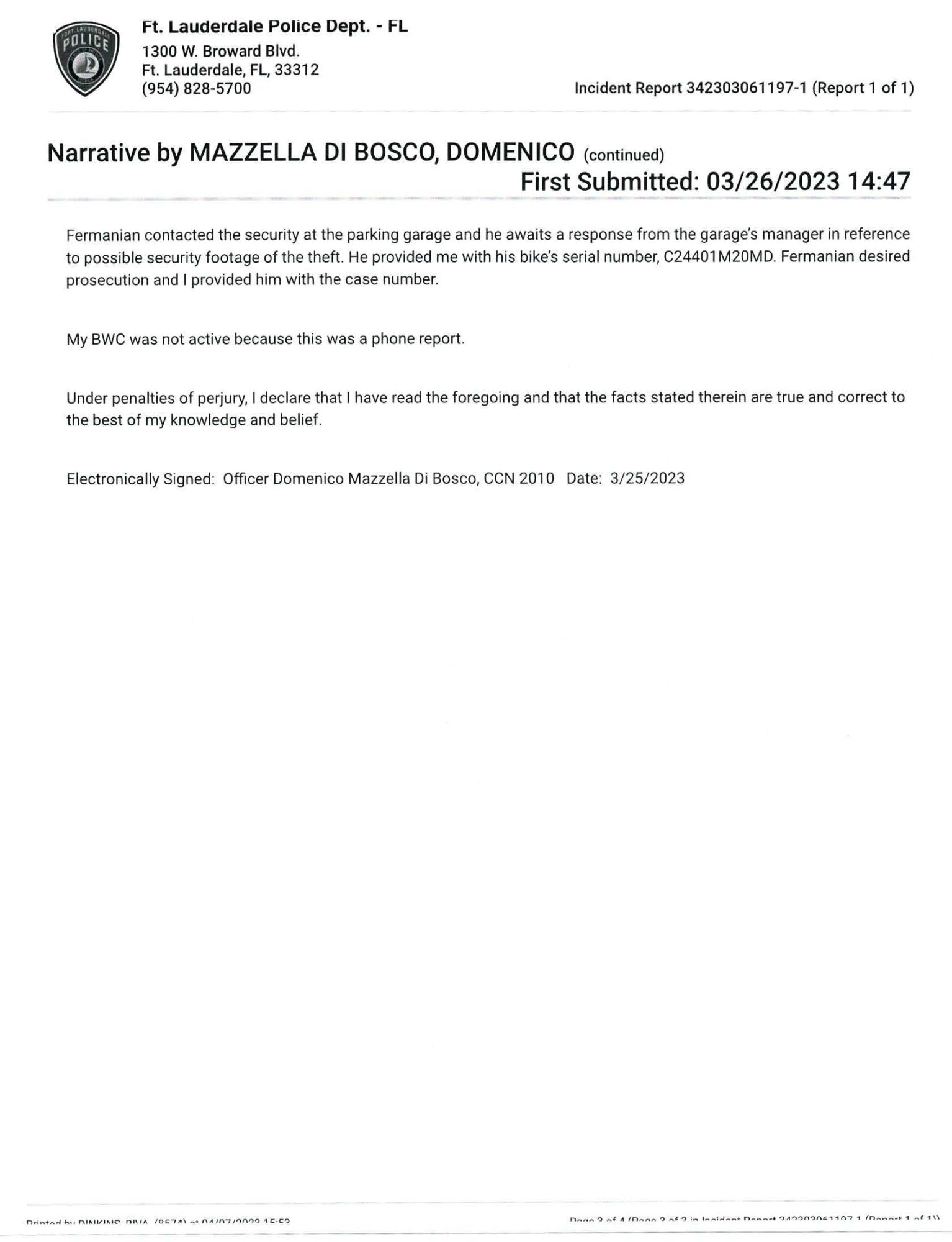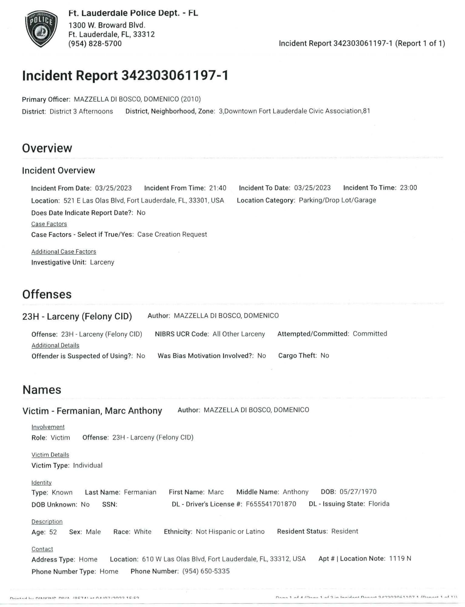 Address of bike theft