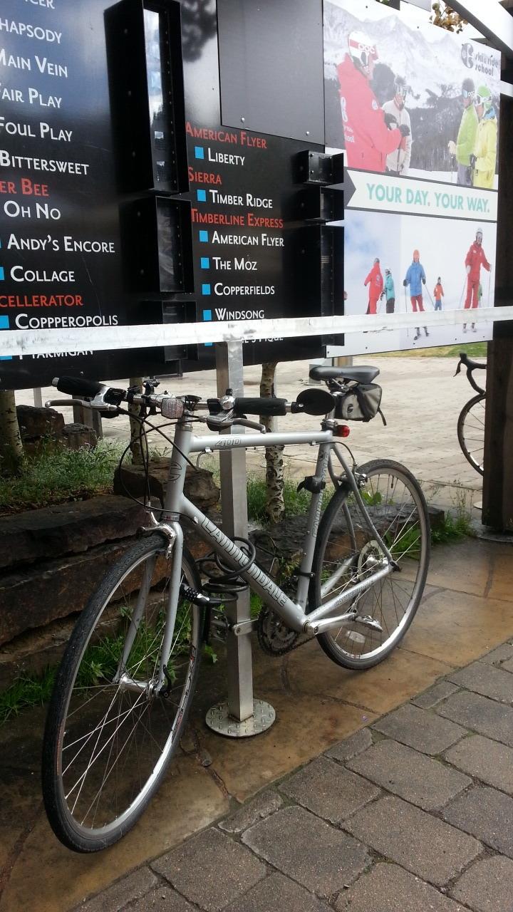 Tree locked to large tree next to full bike rack at 7.30pm. Well lit and well traveled pedestrian area in retail-entertainment area known as Muvico-Sundial. Bike missing when movie was over at 10:15pm.