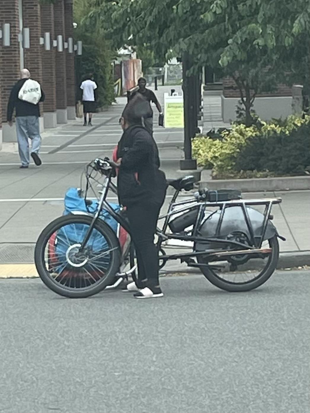 Stolen in front of preschool. Photo is of thief, photo of black bike is the same bike with a different person. It’s been spraypainted black and last seen by the Mt Baker light rail station.