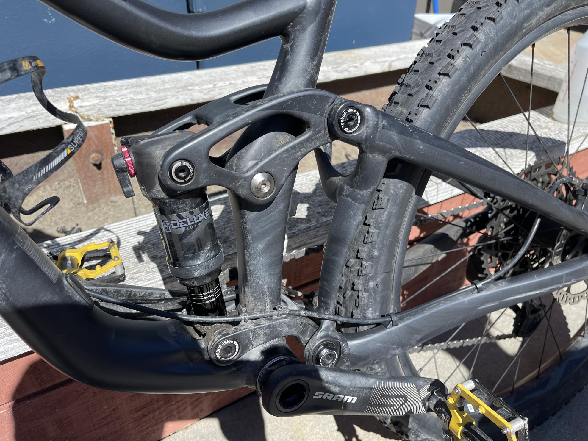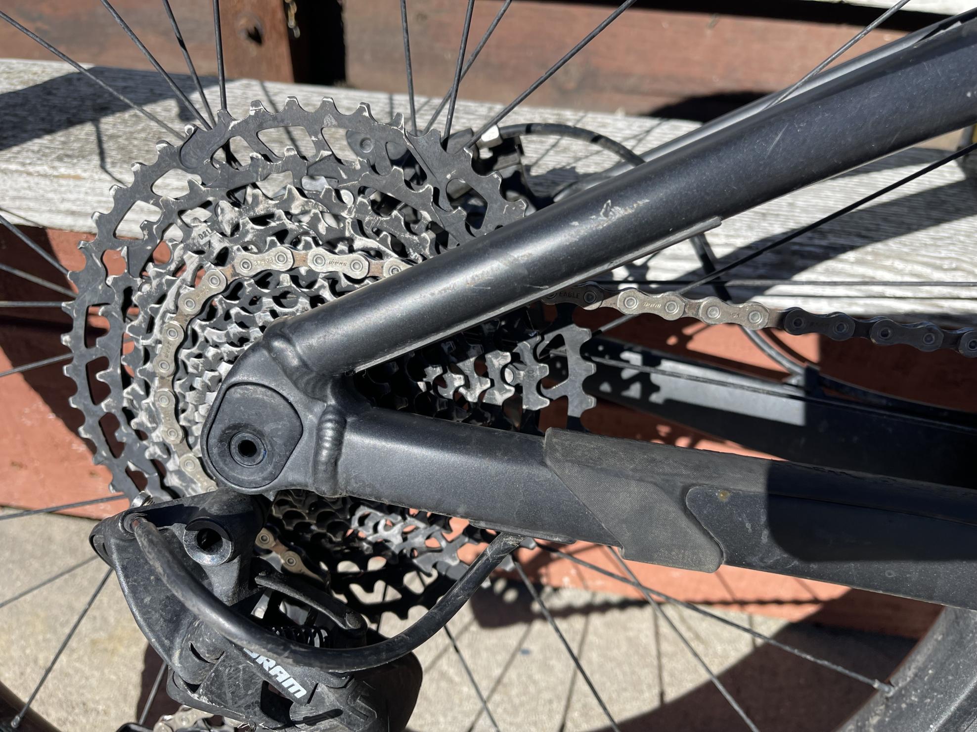 Security cable was routed through the frame and wheels then secured to a fixed object. It was likely taken on or about 8/6/2023 at 3am. Two full suspension mountain bikes were taken at the same time. One was recovered the same day in Lompoc, CA.