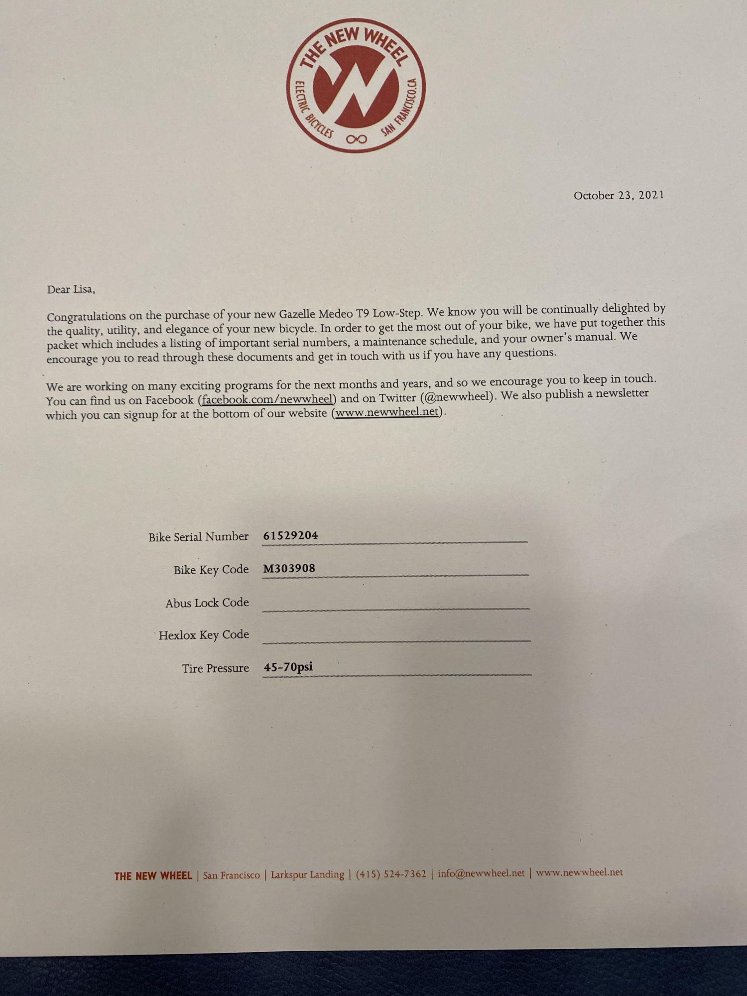 Bike frame number