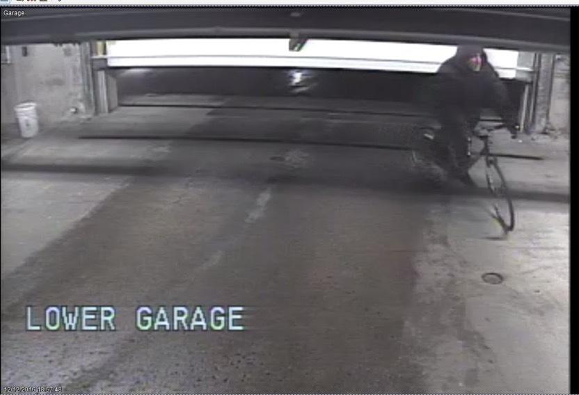 The bike was locked to a large cement pillar inside a large parking garage using a cable and pad lock. Thief entered the garage on foot by following a resident in behind their car. They then cut the cable and took the bike leaving the cable and lock behind. Exited on the bike out the garage door. It was caught on camera. It occurred at exactly 6:57pm.