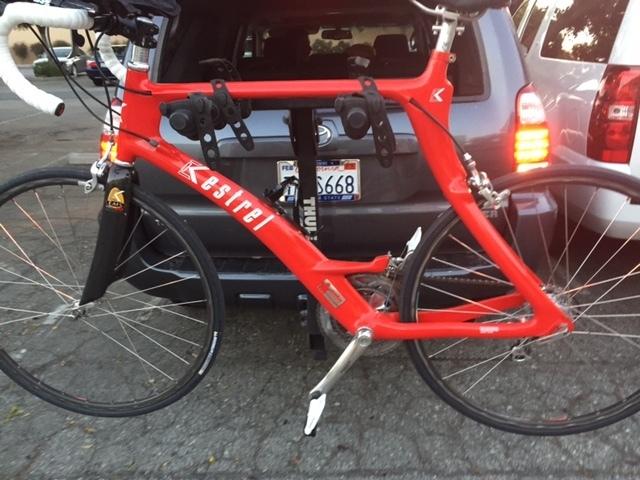 My bike along with 3 others from my tri club were stolen off of our cars today at Depot Park in Santa Cruz. My bike was locked with another bike on the back of our car. The thief cut the cable lock and took the bike off the car and took off leaving behind only a small piece of the cable behind on the ground as well as pieces o the bike rack which they broke in order to get the bike off the car.
