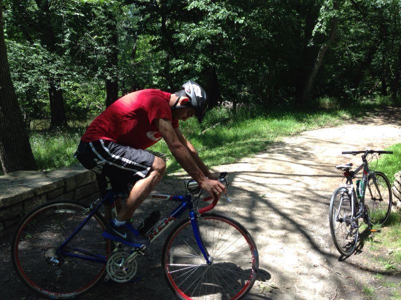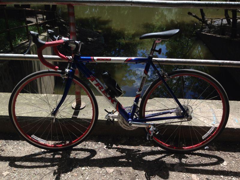 My husband and I had our road bike in the garage locked with another Schwinn hybrid bike in the covered parking lot at our Apartment complex called Hawthorne Apartments. There was a cable attached to the wall, which was attached to the bikes, which was locked with another kryptonite lock behind our parked car. We removed the original seat and put a ULTRACYCLE very soft seat. If you anyone sees something similar please tell us. It is so not fair that we worked so hard to buy our Trek and someone just stole it.