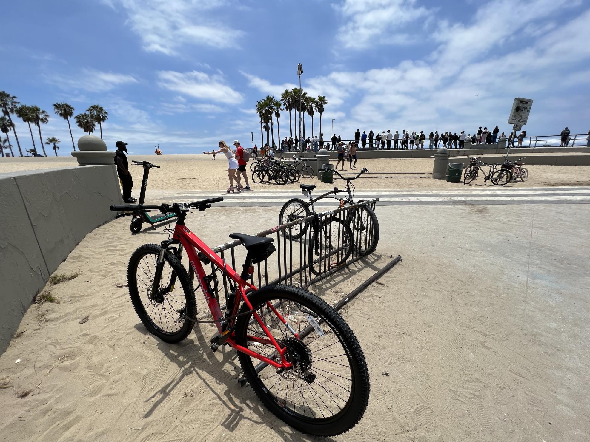Bicycle stolen while locked up on the bike racks along beach trail in Santa Monica, CA. Bike and lock were gone upon return from the sand.
