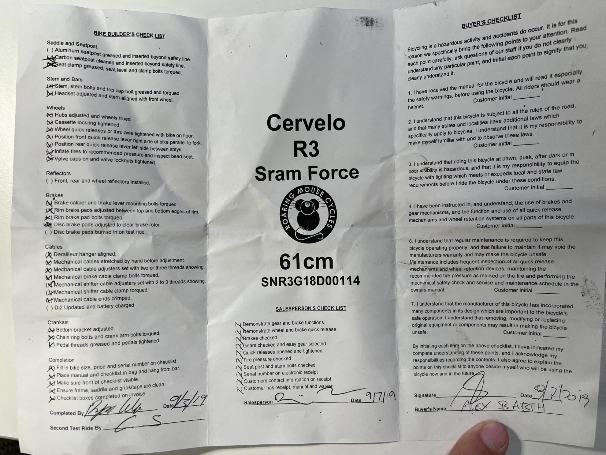 Bike frame number