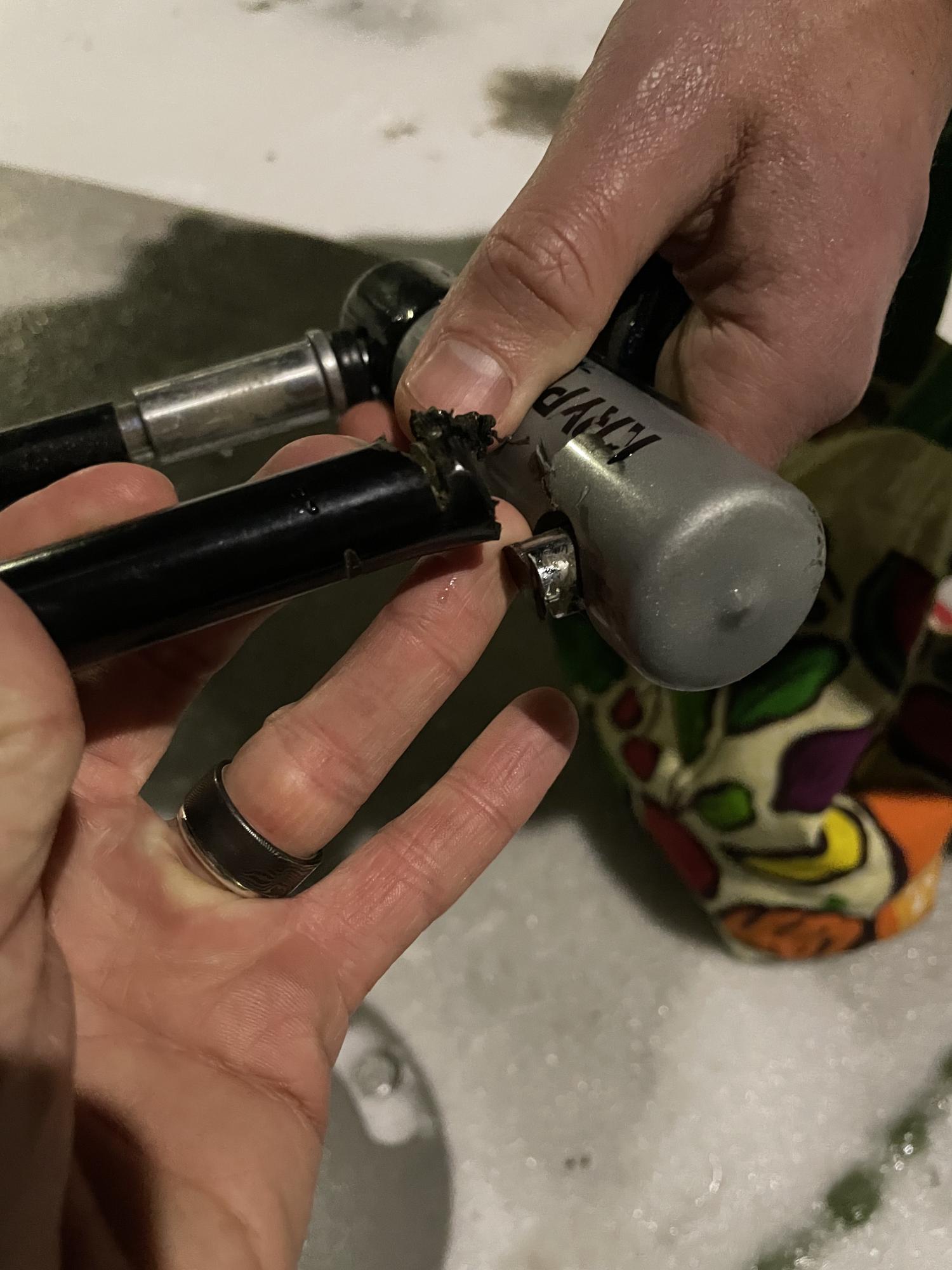 My husband and I rode our e-bikes to our friends Christmas party at 1725 SE 50TH AVE, Portland, OR 97215, arriving around 7:45pm on 12/23/22 and locked our bikes to the large, solid metal street post on the corner of SE Mill and 50th ave. We used kryptonite locks, my husband locked his top tube directly to the street post and I locked my top tube to his. We also engaged the rear wheel Dutch locks on the bikes; these locks go through the rear spokes and effectively make the rear wheel rotation impossible without destroying the wheel if left locked. We were leaving the party around 2:15am on 12/24/22 and when we walked outside our bikes were gone. The lock used on my husbands bike was cut and left attached to the street post. We checked for tracks in the snow and we couldn’t see any that would match our bikes, so it seems as though they would have been transported in a vehicle. The bikes are heavy and they were attached to each other and the rear wheels were locked so they couldn’t be ridden away. They would have been quite cumbersome. We took photos and video of the scene with the bikes gone and our lock still attacked to the post. Additionally, the way the bike lock was cut, it seems that the top tube of the blue bike may have been cut to free the bikes since the opening of the lock is only approx 1/2inch, which is not enough clearance to get the top tube free. We also had zip ties around our wheels/tires for added traction in the winter storm, the zip ties are black. The bikes are dark gray and a muted blue color, both with red front racks and black back racks. They each have 1 rear pannier on the left side of the bike, black in color. The blue bike has a narwhal squeeky bell on the bars.