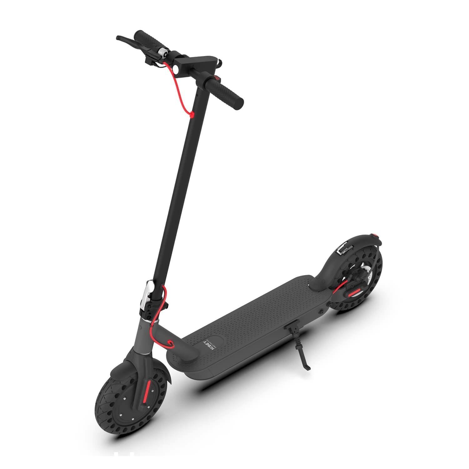 The scooter has a black body color with red cables. A phone holder was installed on the left handlebar. The U lock used to lock the scooter was black, wrapped with rubber. The rubber on the U lock frayed heavily in the middle.