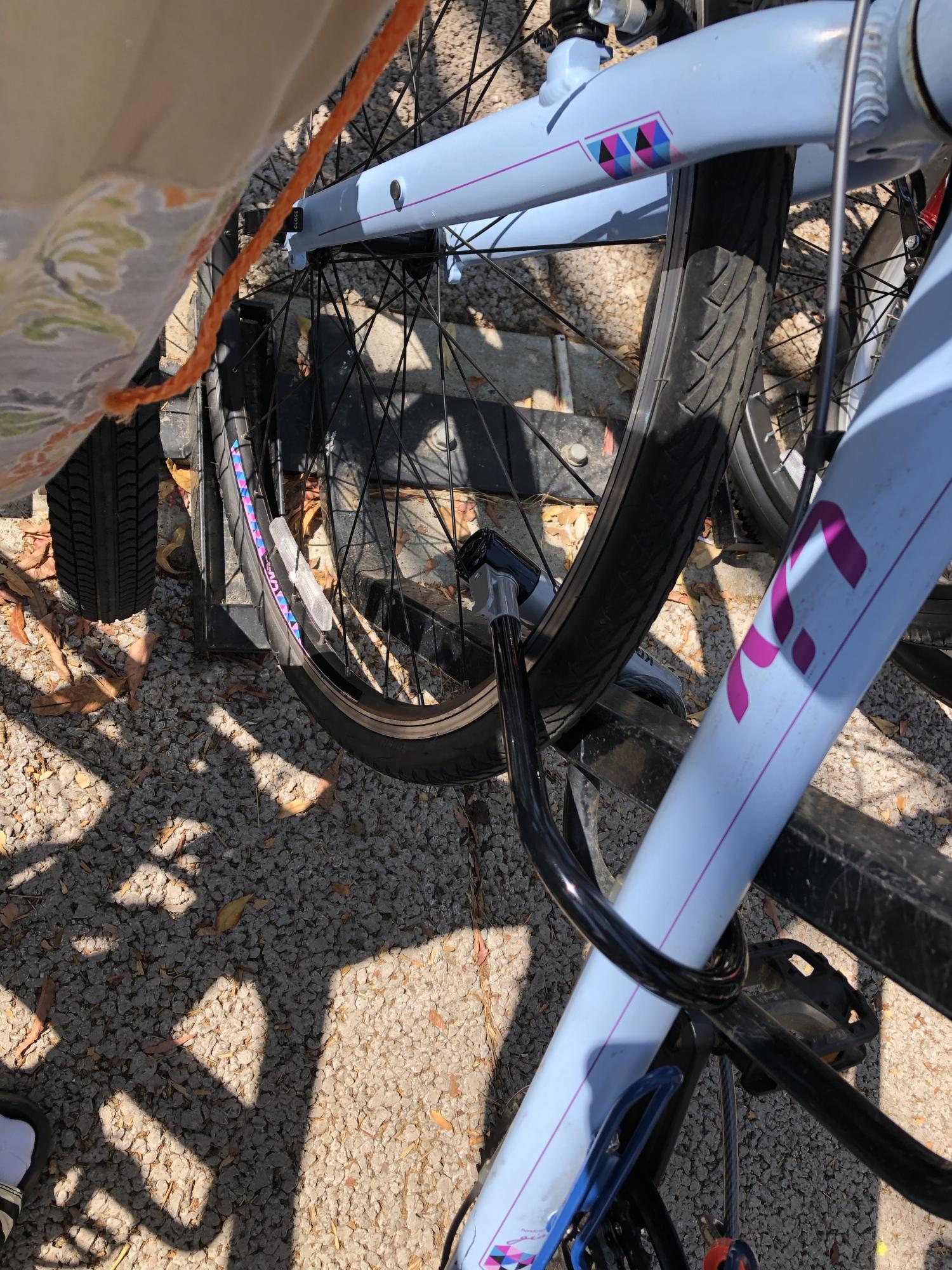 Took place sometime between May 16th 7 pm and May 17th 9 am. Both tires and frame of the bike were locked to a rack on the apartment complex property using a cable and U-lock. The entire bike, cable, and lock (apart from a small cut piece of the U-lock) appear to have been taken.