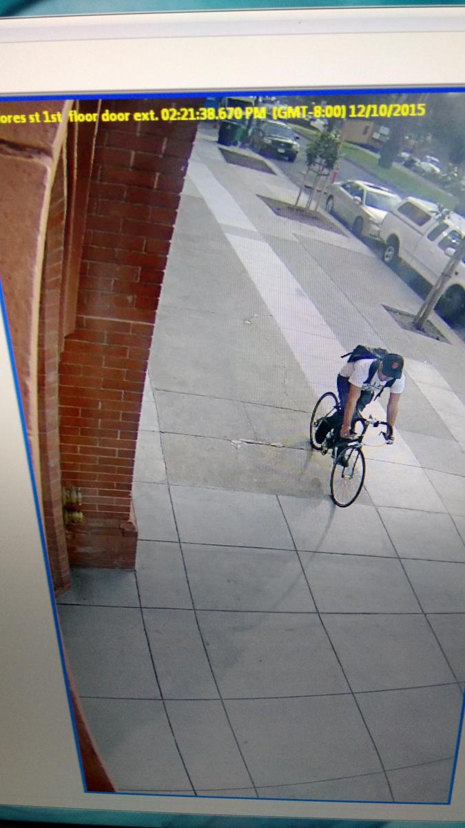 Thief broke into house garage and stole 5 bicycles, a skateboard, and a bike pump on Dec. 10th, 2015 at 2:20-2:45 pm. Caught on surveillance footage.