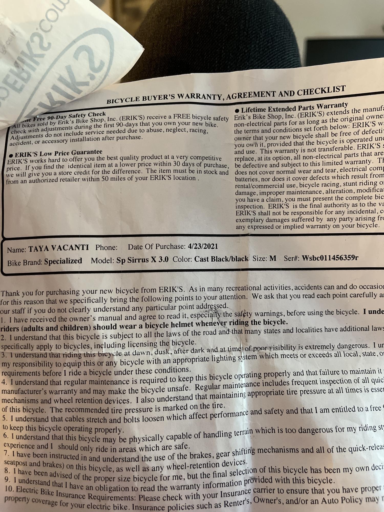 Bike frame number