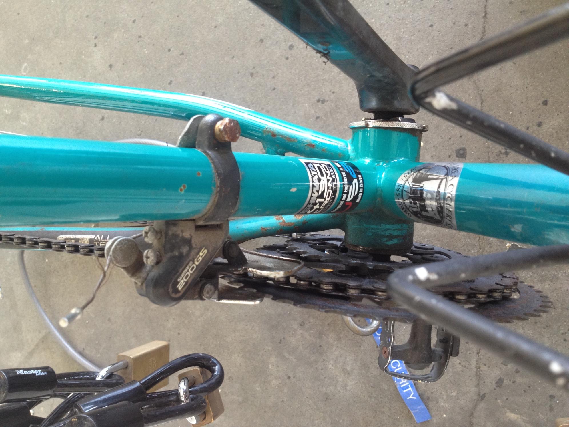 I locked by bike with a steel flex lock around 9:30am to a metal signpost on the sidewalk in front of motorcycle parking on 18th Street between Castro and Hartford St (approximately in front of Poesia restaurant) and went into Reveille Coffee to work for a few hours. I came out at 11:40am to go to an appointment and my cut lock was on the floor with no bike. Bystanders said they hadn't seen anything, nor had any shop keepers. I took photos (of the cut broken bike lock on the ground), then retrieved the lock (which I have) and went to my appt. The bike is easy to identify, as the wheels are smaller than the frame, the handlebars are wide, the seat is locked to the frame, and there is a rear carriage-rack. I have several photos of the bike, if that's helpful. There was no serial number that I ever could find, as I bought it from someone off craigslist in 2011 (seller seemed legitimate, sold it from his place in Richmond, had invested in the bike - shimano gears as an example). Happy to provide photos and any other info that's helpful.