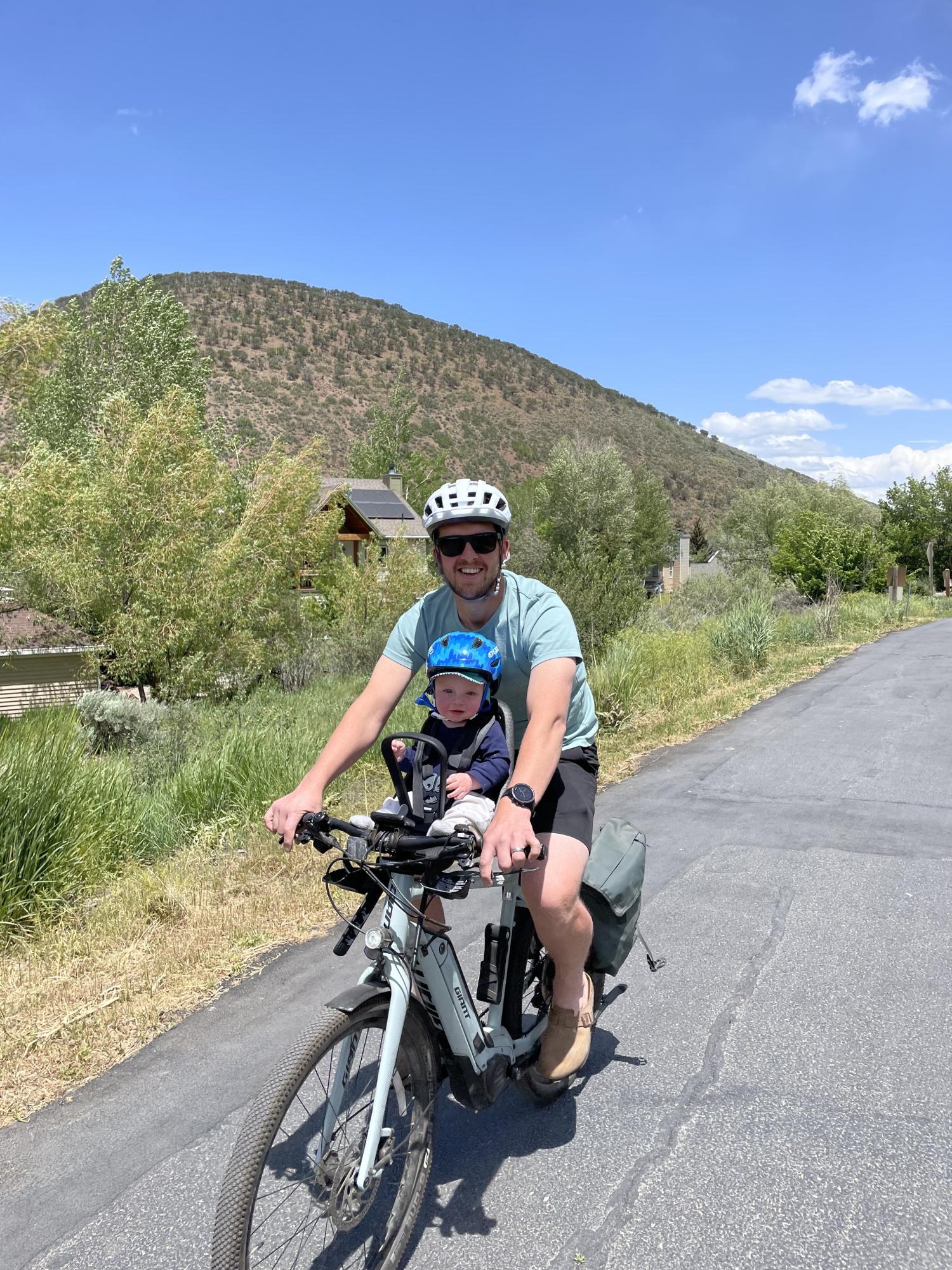 The e-bike was stolen out of our garage in the middle of the night. Bike includes a Thule infant seat on the crossbar and green Thule panniers.