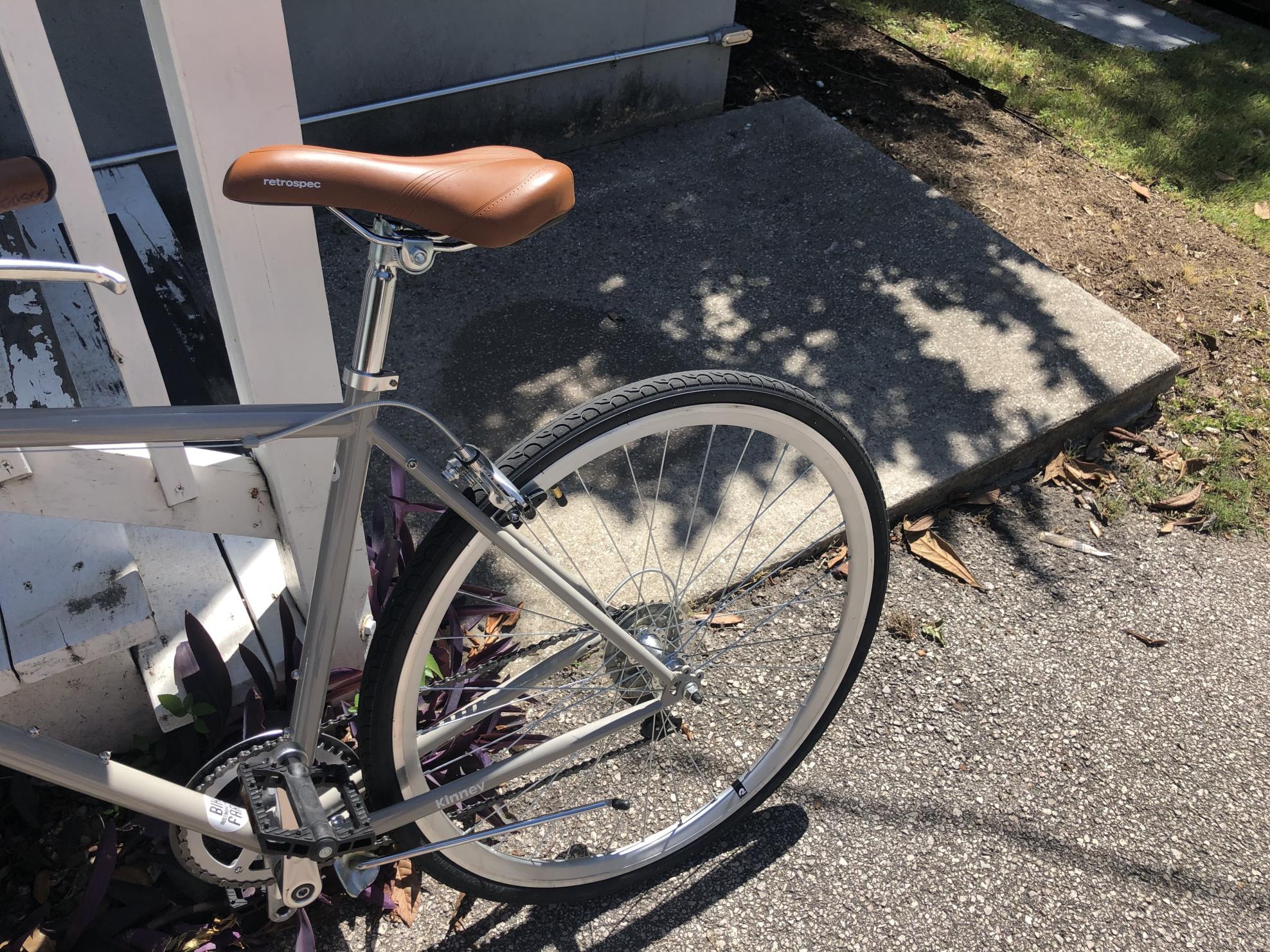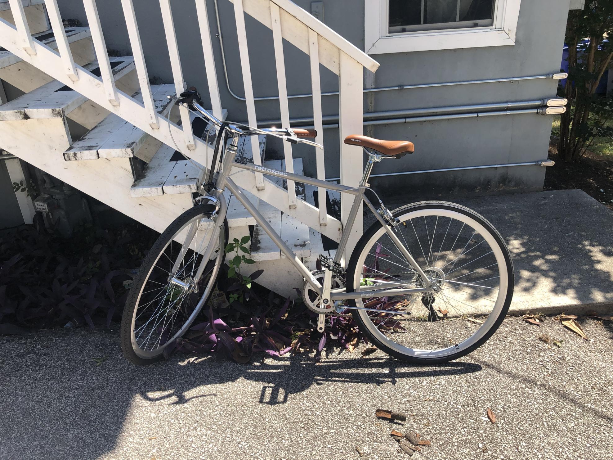 Came home after a trip to find bike gone from the stairs in front of my apartment. Whoever took it removed a wooden beam from the stairs in order to pull the bike free.