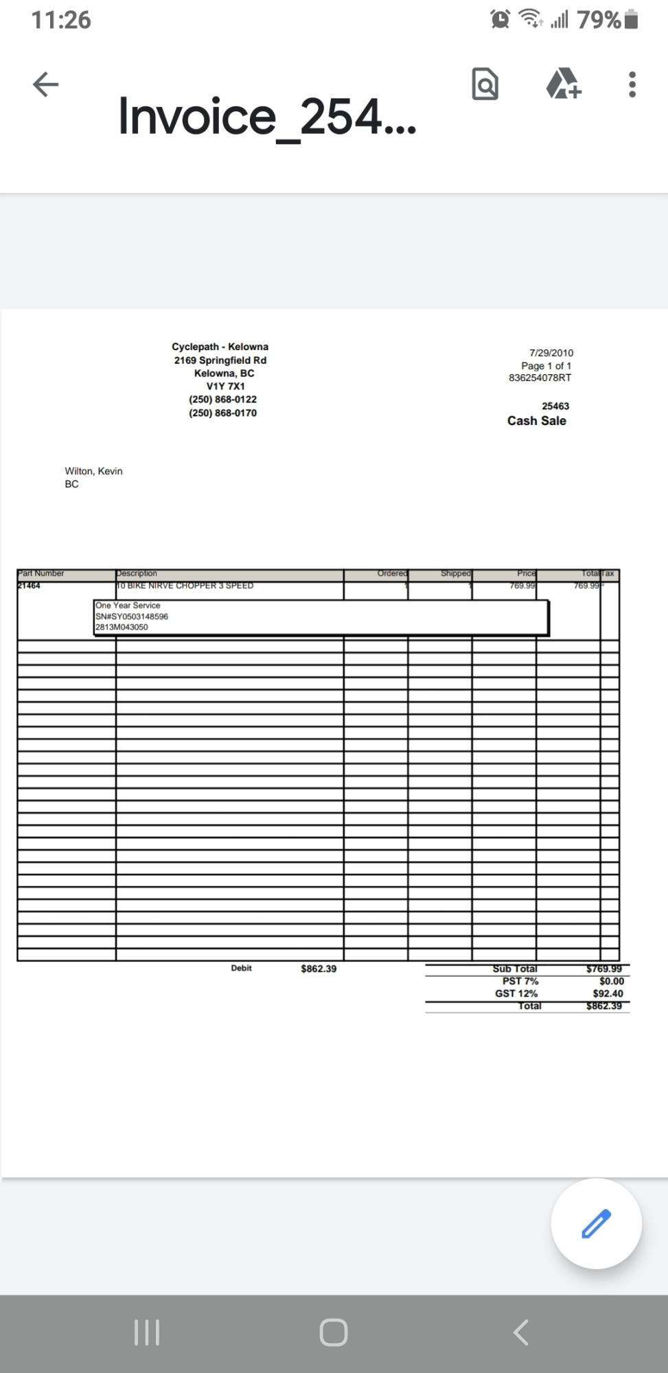 Bike frame number