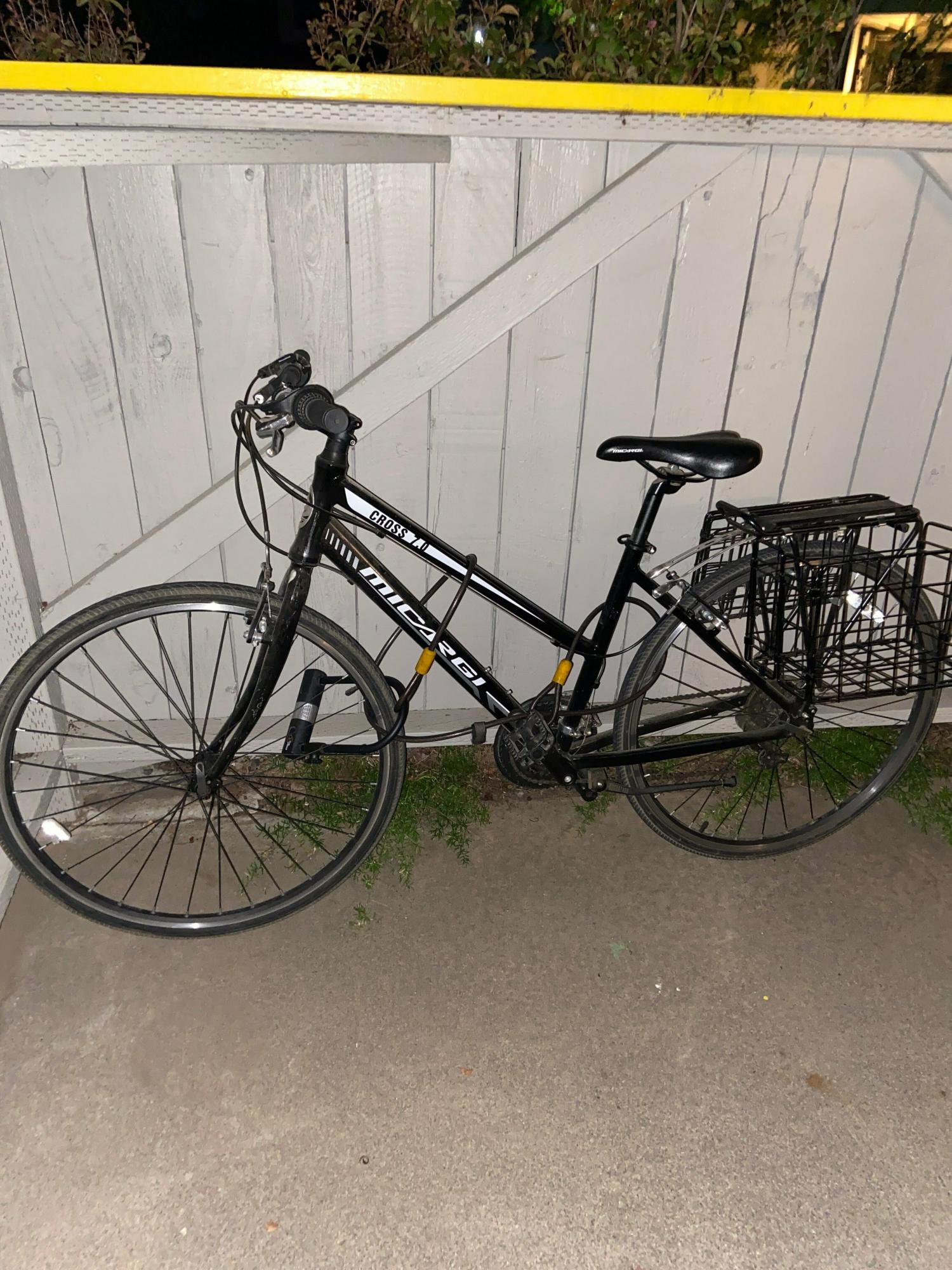Bike left in attached patio of apartment. Found missing in the morning of 7/30/2023 but could’ve been taken any time 24 hours prior. Two black rear basket attached when last seen.
