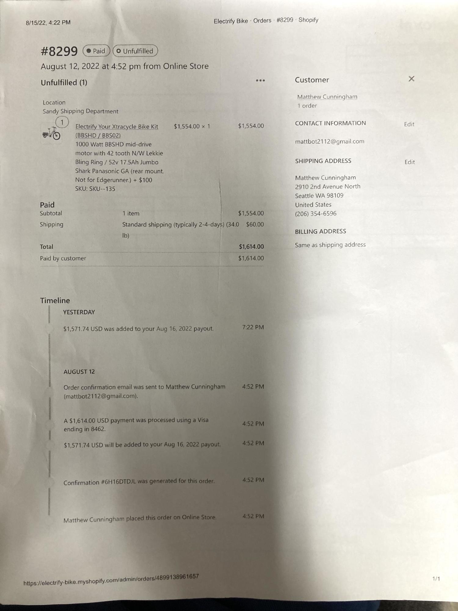 Address of bike theft