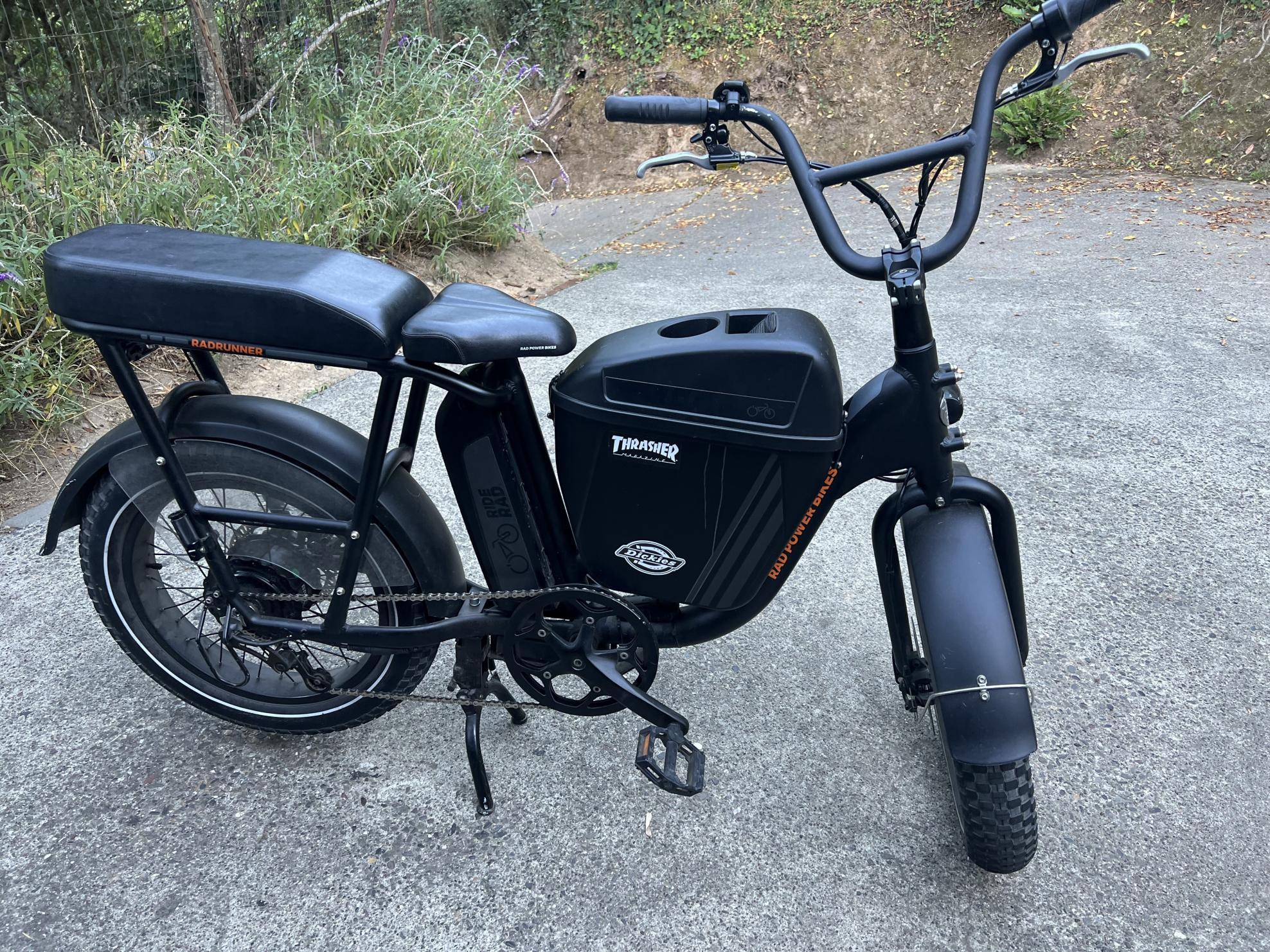 We have residential security camera footage of two adult males who first looked at the bike and locks on 2/25/24 at 455 am, then returns to scene with grinder to cut locks; leaves and returns to scene with wrench to use blunt force to finish breaking lock and take bike. Also have footage of truck and license plate that thieves used.