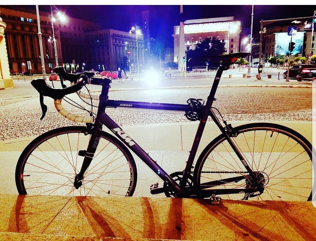 Specific signs: KTM White logo on the Frame down tube, Strada White Logo on the Top tube, Seat tube orange points and black Strada Logo. On the head tube KTM logo. White tapes on handlebar. Shimano SPD pedals. On the Handlebar I have tracks from the Triathlon Aero bars, also the frame is scratched