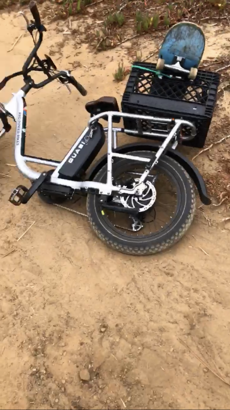 I locked up my Rad Power Rad Runner Plus ebike to the fence at Encinitas community park and I’m not sure what time but somebody cut the lock on my bike and took it and my ebike is my only way of transportation anywhere and everywhere I go because I do not have my license yet as I am newly 16.