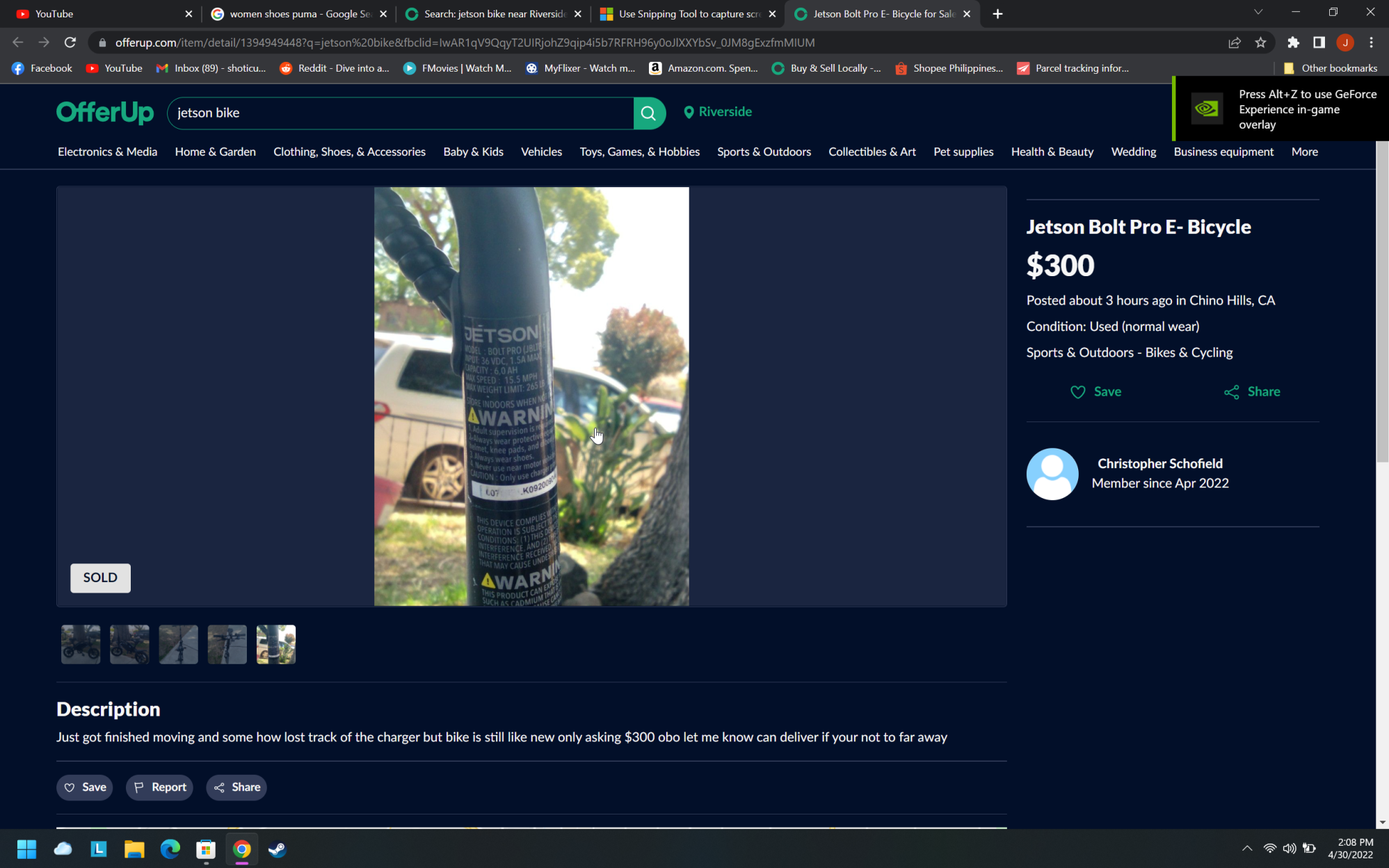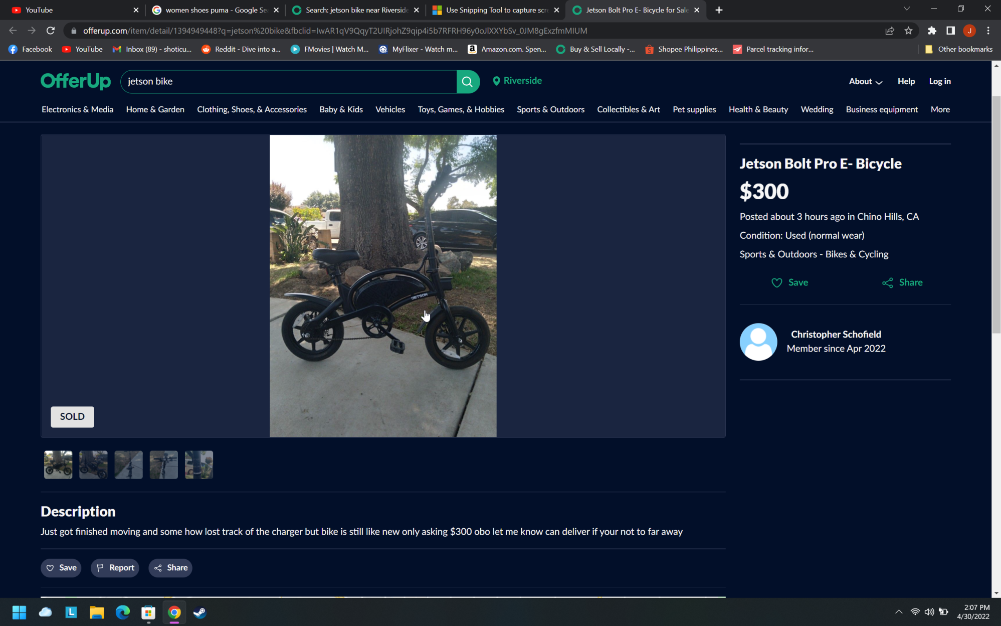 My dad locked it outside of Albertson's and came out and it was gone. Seen on offerup for sale moments later, then it was sold.