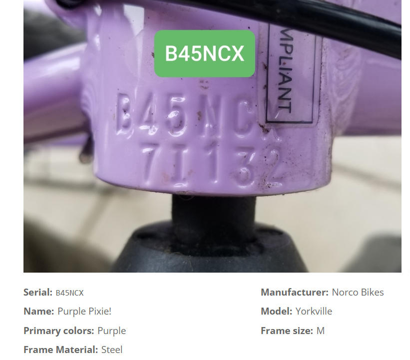Bike frame number
