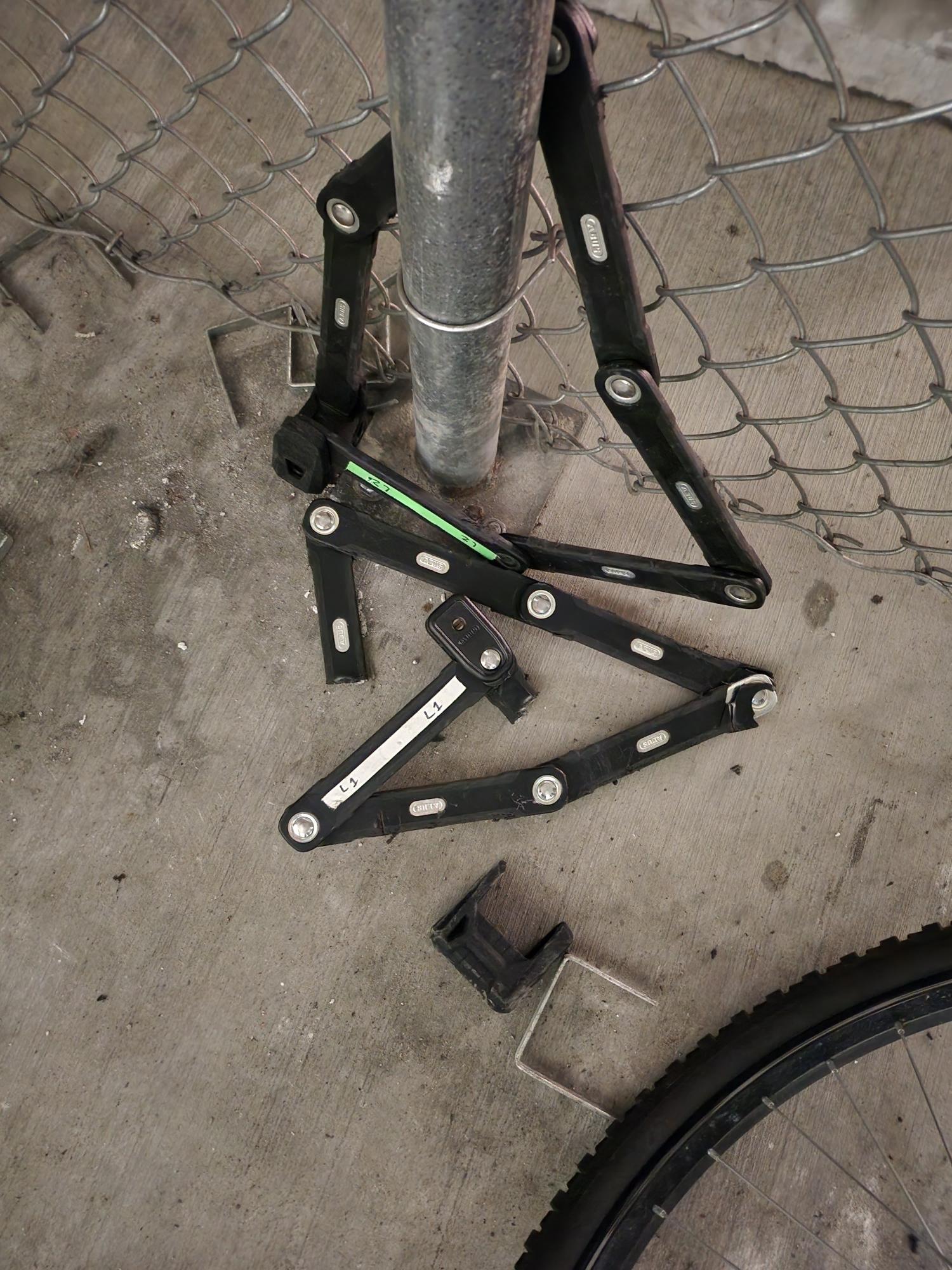 Was stolen (2nd time) in my apartment garage behind a fenced area surrounded by other bikes (mine was the only E-bike). It's a Rad Power E-bike. I used two Rad Power heavy duty locks, but this time, it looks like it was cut through (intimidatingly enough). The cut looked clean, it might've been cut using a power tool.