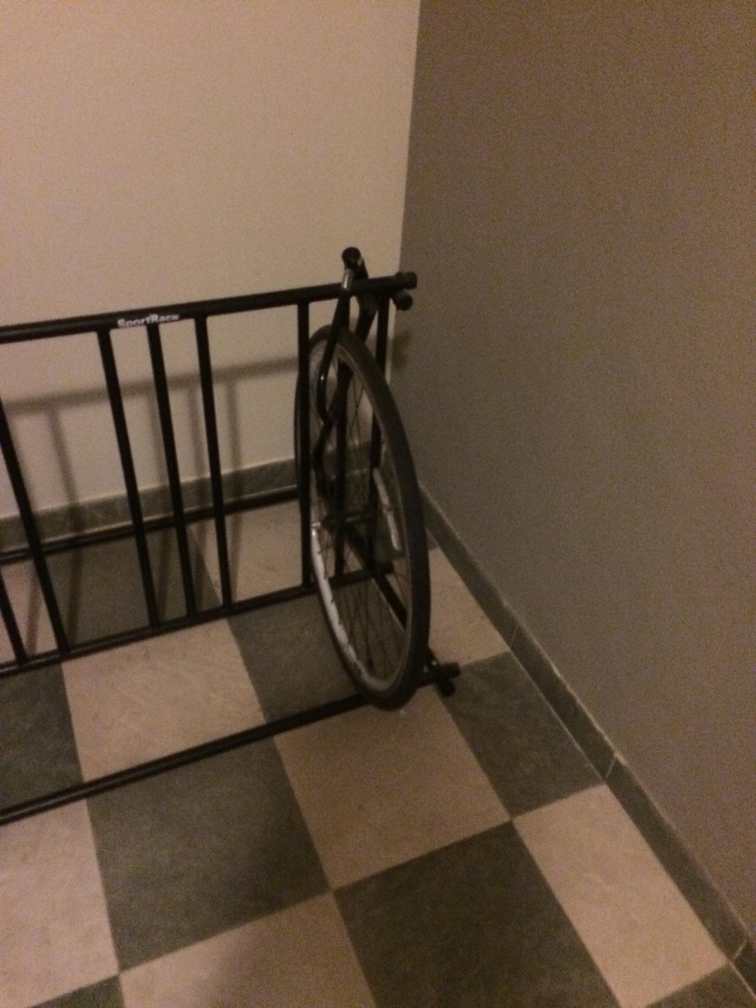 Front wheel was removed. Pic included. Wheel was locked, and still is. Bike gone.