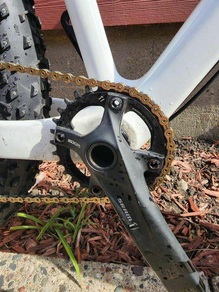 garage service door must have been open, thief grabbed the bike between 12am and 1pm 12/31 and exited through garage door, tracks were present.