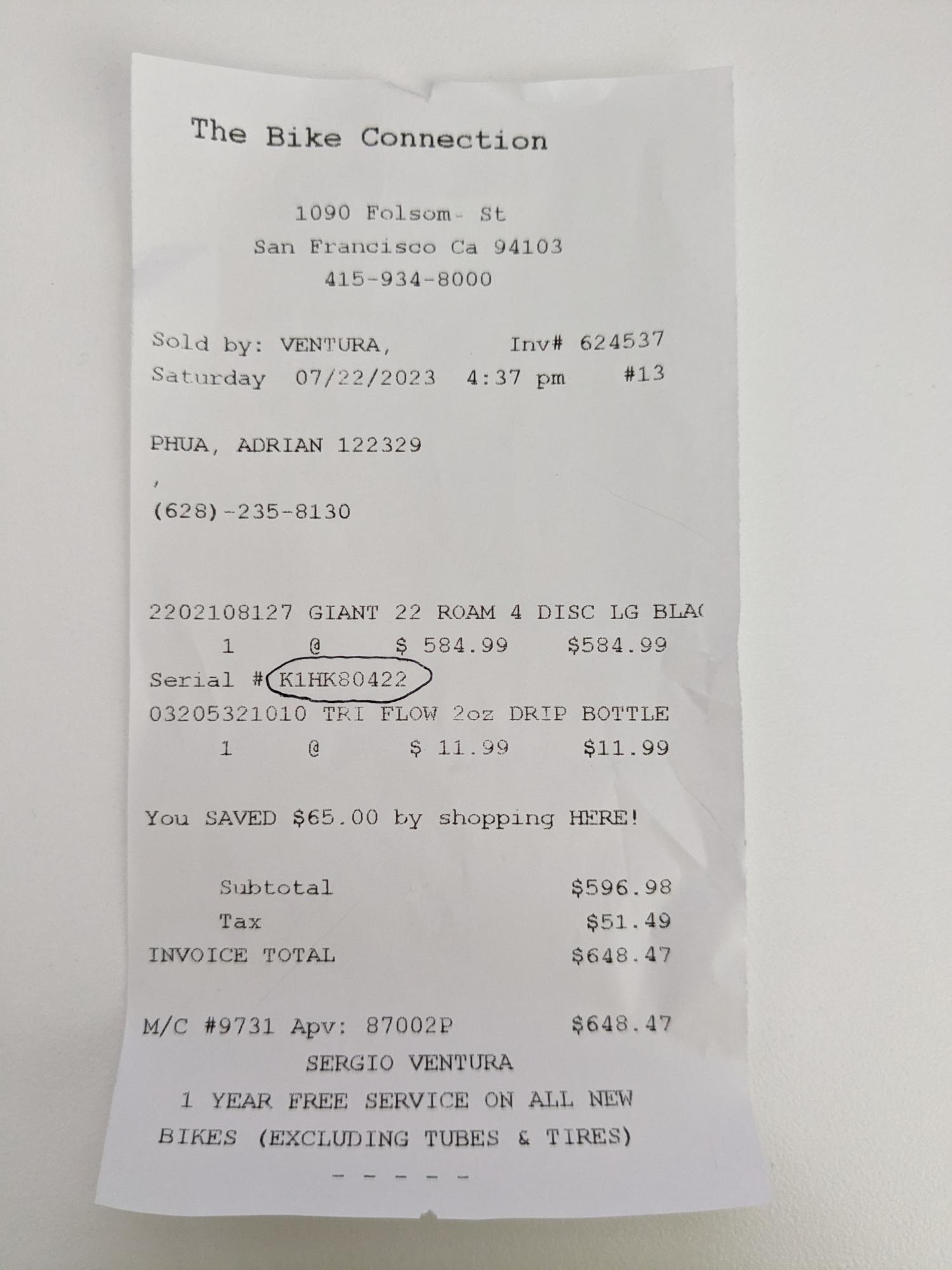 Bike frame number