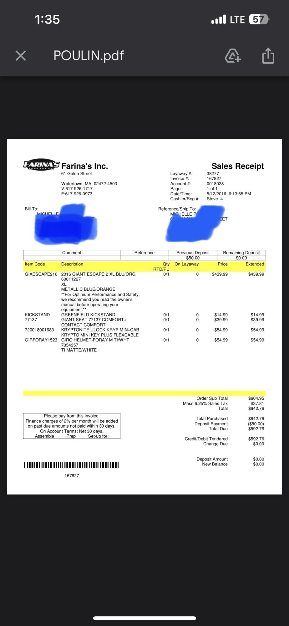 My bike was stolen from Cambridge (the corner of Putnam and Magazine street) on 5/14 or 5/15. It’s a 2016 blue/purple and orange Giant Escape 2XL with a black front fork and black aluminum fenders (fenders not pictured).