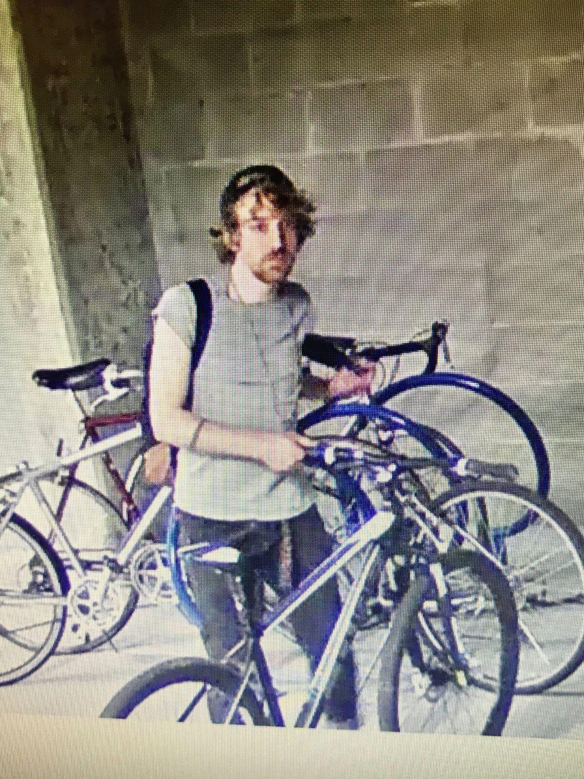 He went to the garage to the bike rack, cut the lock and took it.
