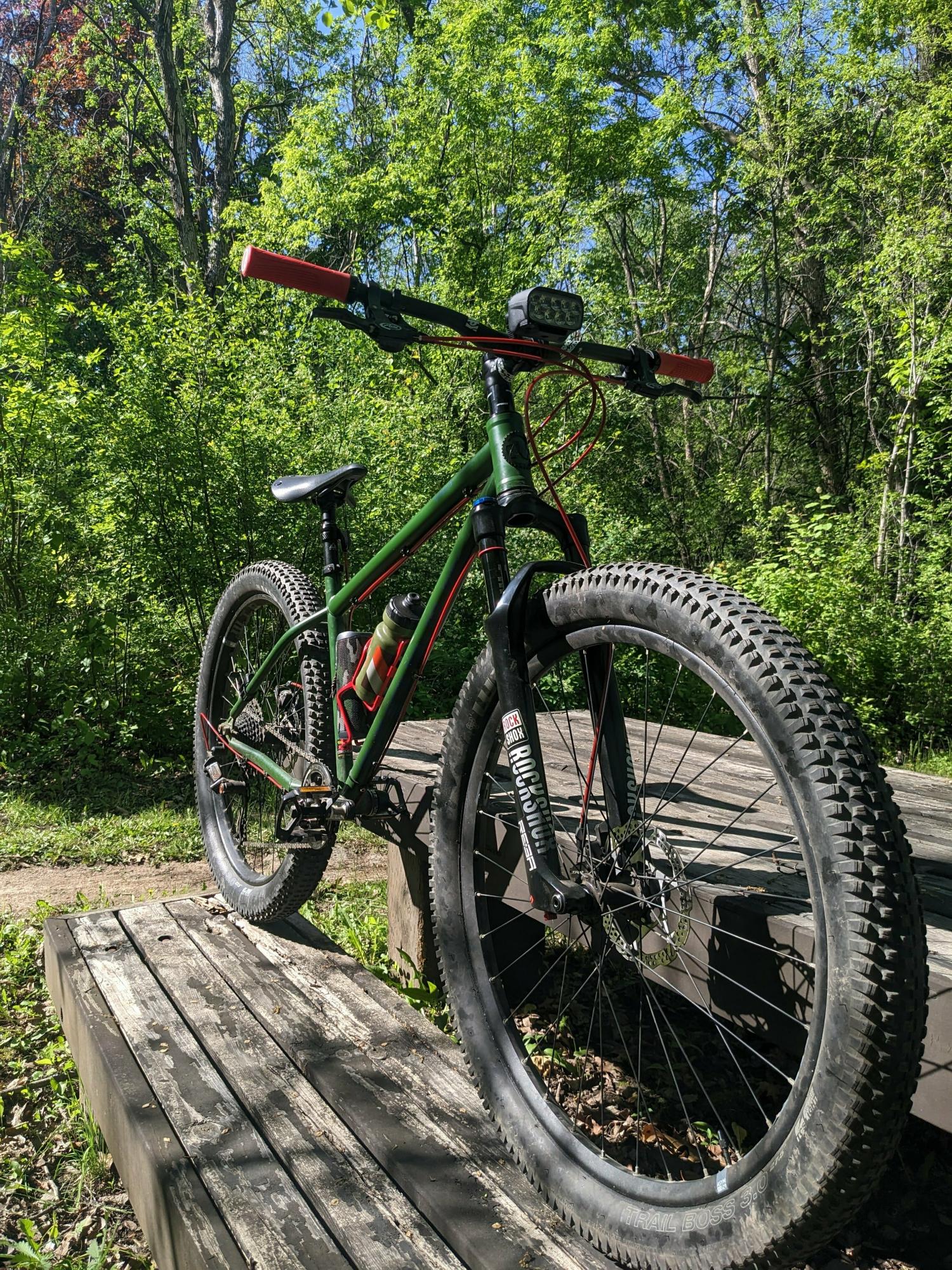 I was on my front porch with my bike and gear waiting for a friend to pick me up for a mountain biking trip in Michigan. I stepped inside to make coffee. I heard the porch door open and slam shut. I stepped back outside and the bike was gone. I went to the sidewalk and saw a male under 35 years old with dark complexion between 5'6" and 5'10" wearing a white shirt riding away with my bike. I chased on foot northbound on Stevens Ave until this person turned West on 35th Street and I could no longer keep up.