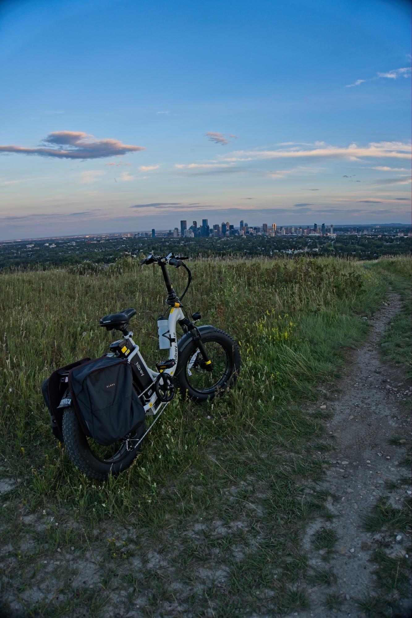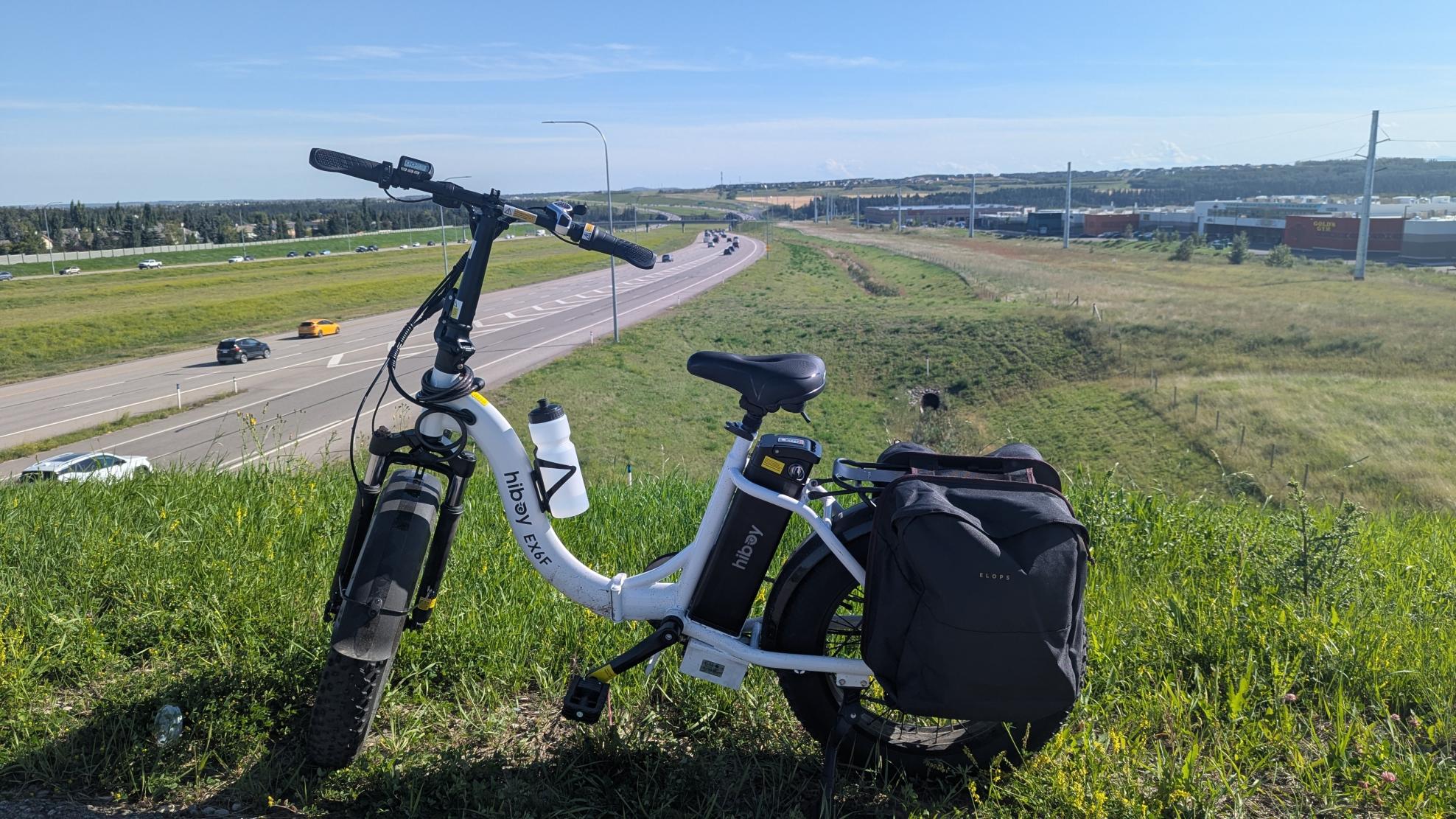 The bike also had dual pannier bags from decathlon on the back, container accessories like a bike pump, extra inner tube, and other various accessories, as well as a backpack that is light blue in colour, and has a hog sauce bottle pattern covering the bag. A PlayStation controller keychain and a purple hot pepper keychain attached outside, inside containing wireless earbuds, a cannabis dugout, as well as biking goggles and a Walmart bag