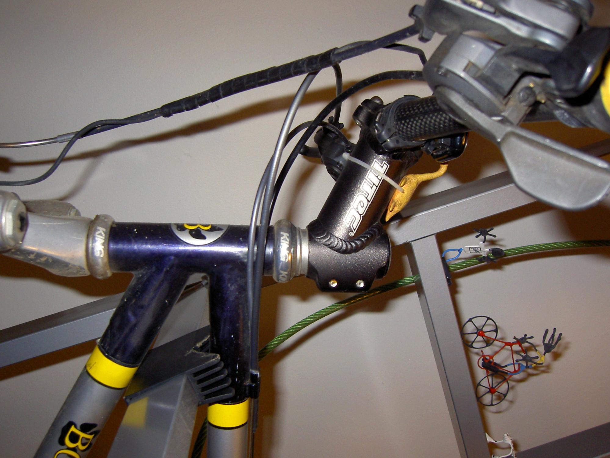 Bike was in a storage closet in secure parking garage of condo complex. Storage closet had a padlock and normal door handle lock. Both were locked prior to theft and thief took the time to replace all locks in locked position to make it appear no-one had been there.