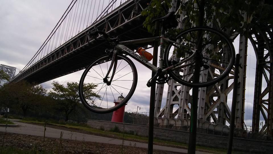 Parked and double locked with front wheel (detached) outside the GYM in Lost Batalion QUeens BLVD. New York City