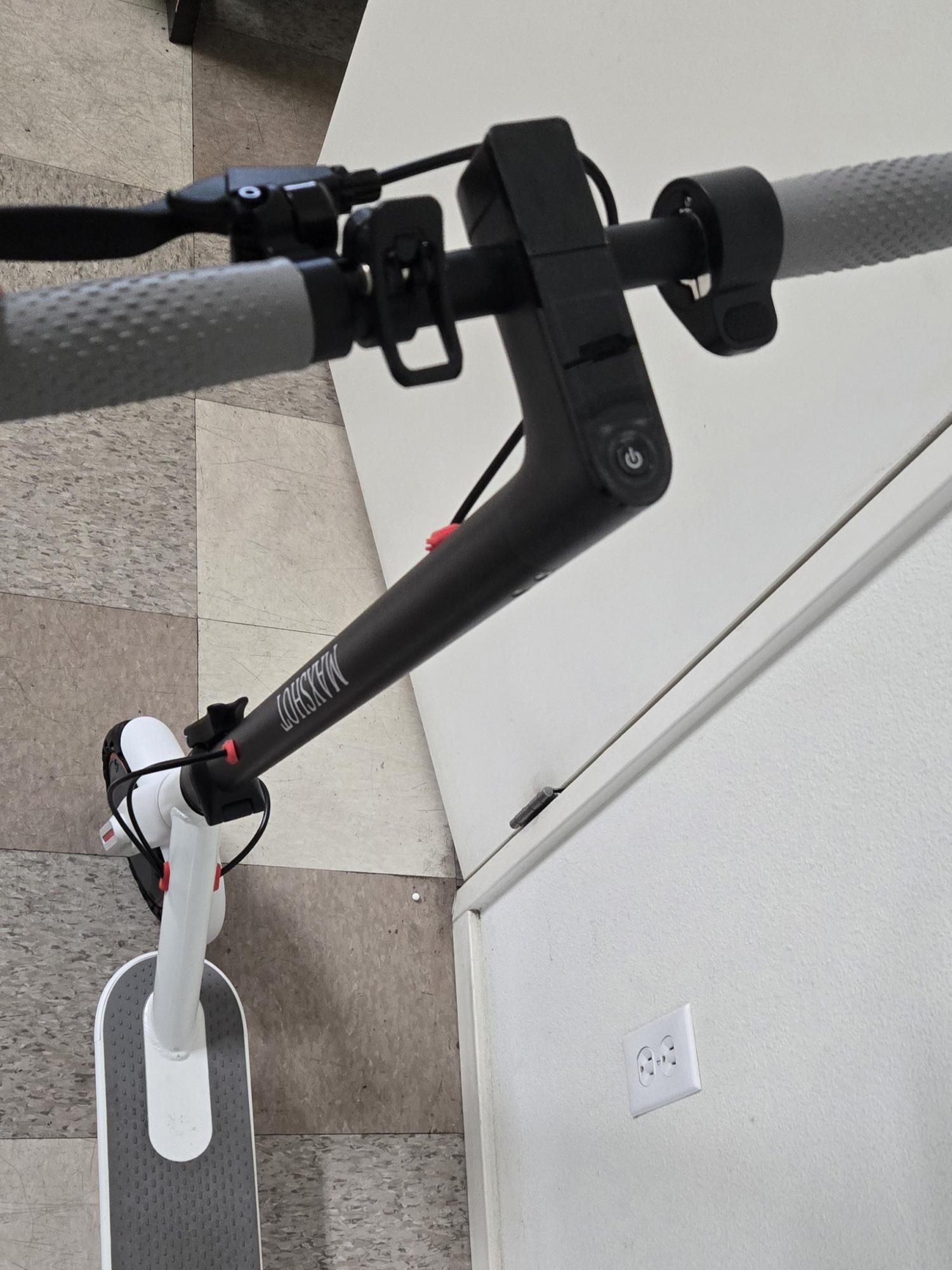 Maxshot V1 White outline-grey deck but BLACK stem e-scooter