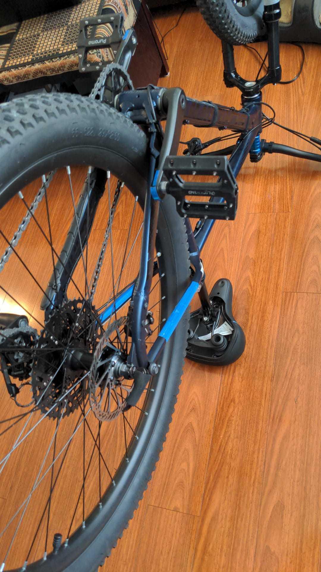 Stolen from Walmart Neighborhood Market @ Dania Beach, Fl. Schwinn Axum DP 29" Mountain Bike with Mechanical Seat Post, Large 19-Inch Men's Style Frame, Blue.This bike has a BAFANG BBS02B 48V 750W Mid Drive Motor, a RST Aerial 29 Mountain Bike Disc Hydraulic Lock Fork 1-1/8" 29er x100mm, a Ibera Bike Rear Rack Touring Carrier For Disc Brake Mount MTB Fat Tire 26"-29", a Shimano mt-200 hydraulic brake set and all my love...