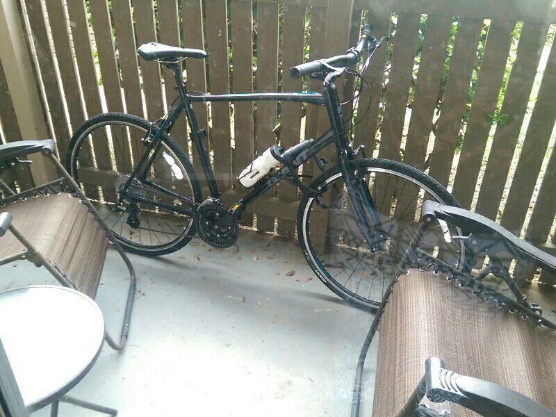 Bike was attached to a post on my patio with a U-lock and cable. The post was pried off and bike was lifted up and over while I was away from home.