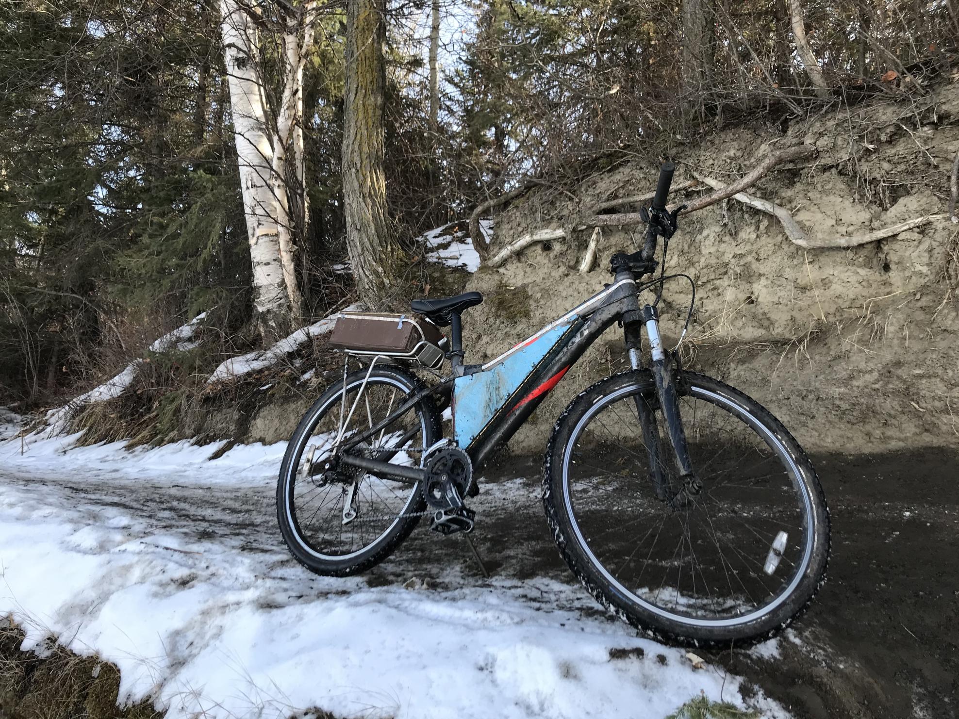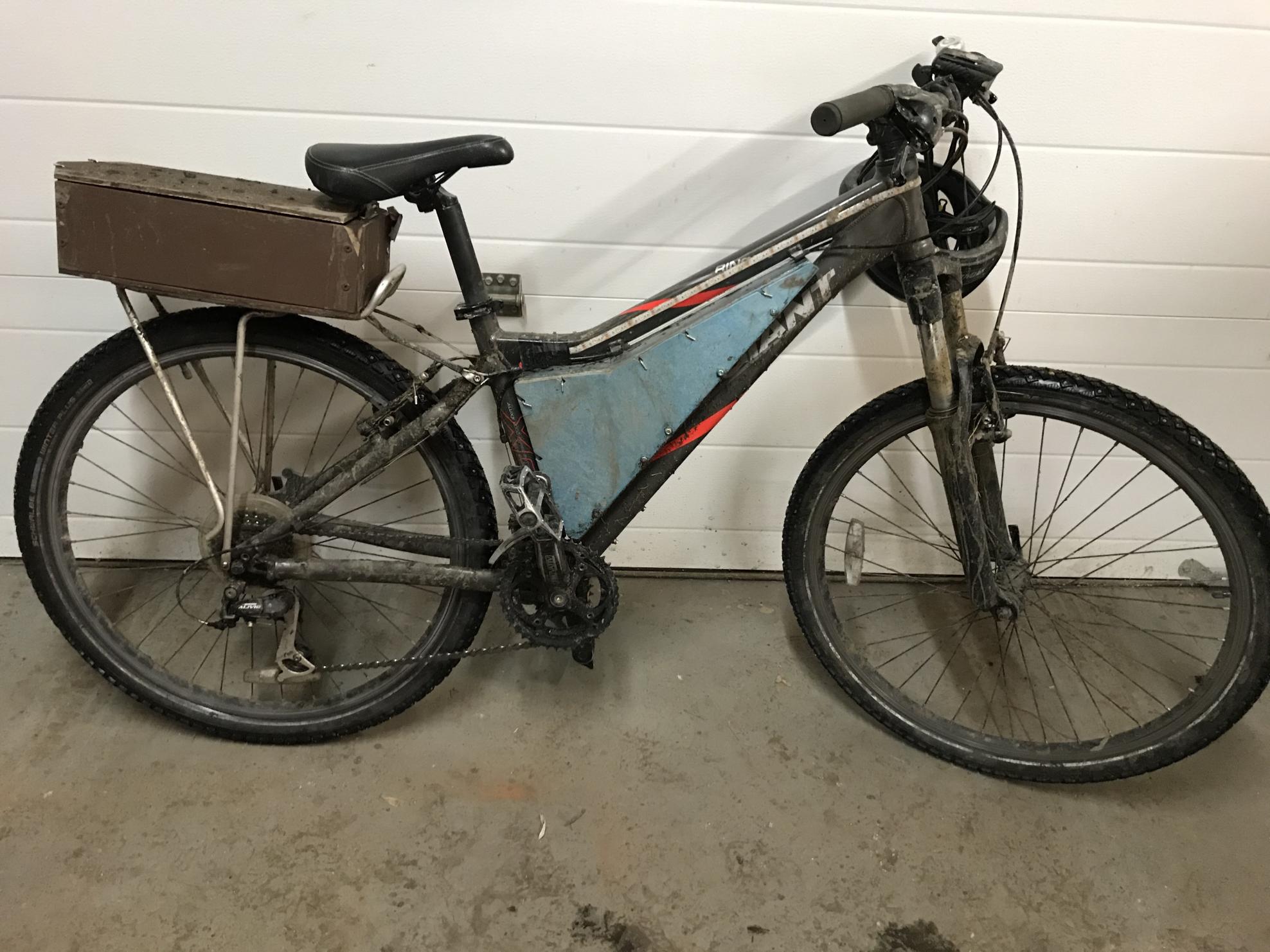 bike differs slightly from photos, front fork is now black and rigid (no more shocks) and box is now white (not blue). rear rack also not mounted.