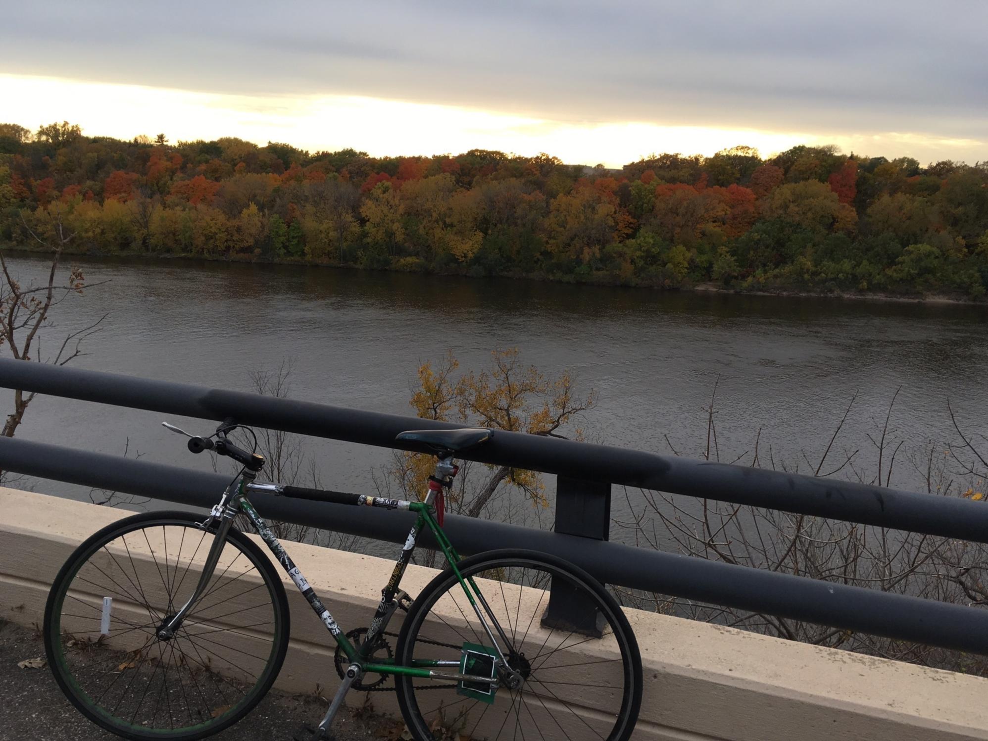 Parked under Dupre Hall, facing Summit Avenue, of Macalester College since the end of classes in May. Rear wheel was stolen in late-June. Bike is an old Italian Velodrome converted into a road bike. Collector's item.