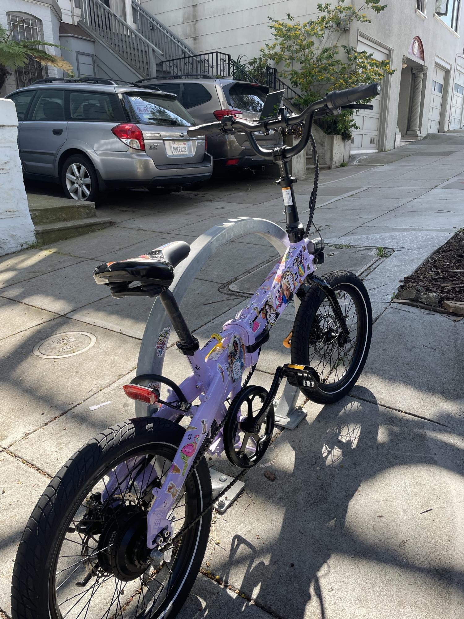 Went missing overnight. One U-lock that locked the frame to the rack went missing with it, the other that locked the front wheel to the rack was left unbroken.